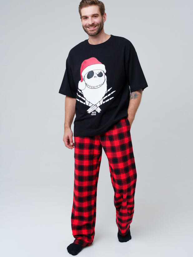 Пижама мужская. Пижама: футболка, фланелевые брюки. Высокое содержание хлопка.