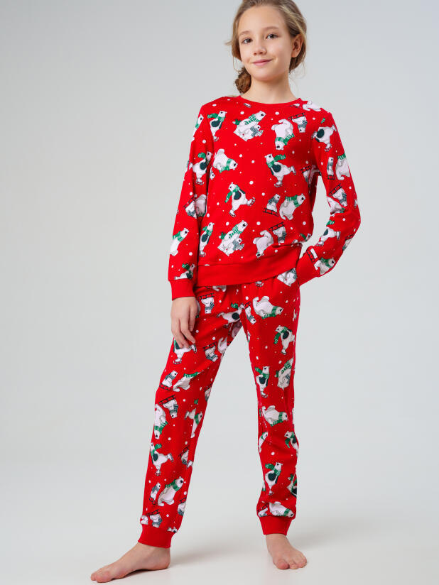 Красная трикотажная пижама для девочки подростка от PlayToday — яркий и удобный комплект для сна и домашнего отдыха. Изготовлена из мягкого хлопкового трикотажа, который дышит, не раздражает кожу и об... Показать описаниееспечивает комфорт в любое время года. Брюки на удобной резинке фиксируются без давления, а свободный крой не сковывает движений во сне. Преимущества модели: + хлопковый трикотаж — дышащий и приятный к телу материал + брюки на мягкой резинке — комфорт и удобство для сна + яркий красный цвет с принтом — праздничное настроение каждый день + свободный крой — свобода движений ночью и дома + практичный комплект — легко стирается и сохраняет цвет Когда носить: Идеально подходит для сна, домашних игр, уютных вечеров с семьёй и поездок. Совет по стилю: Сочетайте пижаму с мягким халатом или домашними тапочками PlayToday для создания полного уюта. Размеры: 128–170 см — подойдут для девочек от 8 лет и старше. Классическая красная трикотажная пижама для девочки подростка от PlayToday — уют, комфорт и яркое настроение для сна и дома.