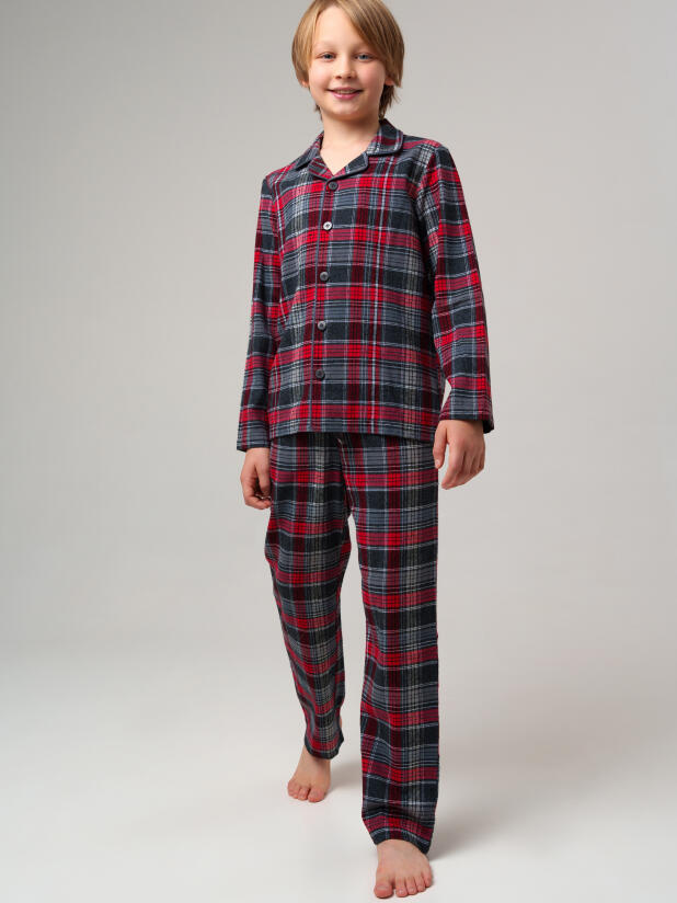Пижама для мальчика подростка. 100% хлопок. Фланель - мягкая, приятная к телу ткань с небольшим начесом. Застежка на пуговицы. Карманы в брюках. Эластичный пояс с тесьмой позволяет легко надевать брюк... Показать описаниеи и утягивать до комфортной посадки.