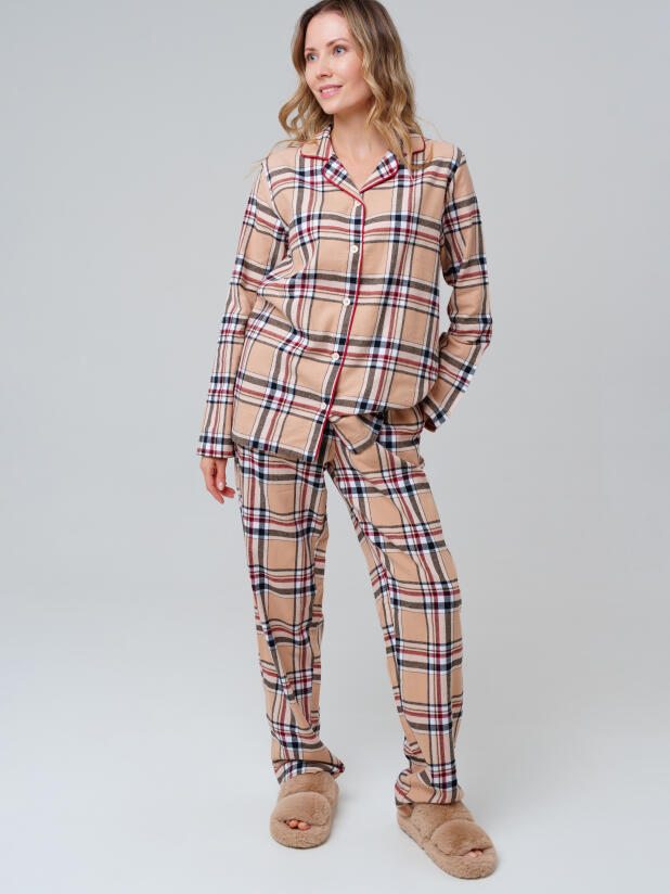 Женская фланелевая пижама от PlayToday — тёплая пижама для женщин, которая создана для уюта и спокойного сна. Классическая пижама в клетку женская с рубашкой на пуговицах и брюками из мягкой ткани с м... Показать описаниеикроначёсом станет любимым комплектом для дома. Преимущества модели: + верх на пуговицах — удобная и практичная застёжка + два кармана — для мелочей под рукой + мягкая фланель с микроначёсом — сохраняет тепло и дарит нежность коже + свободный крой — комфорт во время сна и отдыха + универсальная клетка — стильная и всегда актуальная + натуральная ткань — дышит и подходит для ежедневного ношения Эта женская пижама фланелевая сочетает тепло и лёгкость. Материал остаётся мягким и уютным даже после множества стирок. Брюки на резинке обеспечивают удобную посадку, а рубашка свободного кроя дарит свободу движений. Совет по стилю: Носите пижаму как женский домашний костюм — с мягкими тапочками или уютным халатом PlayToday. Это отличный вариант не только для сна, но и для комфортных вечеров дома. Размеры: модель доступна в линейке S, M, L, XL, XXL. Женская тёплая пижама от PlayToday — это уютная пижама в клетку, которая подойдёт для сна, отдыха и домашних вечеров, делая каждый день комфортным.