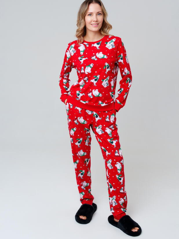 Женская трикотажная пижама от PlayToday — уютная и яркая, словно любимый домашний праздник. Мягкий свитшот и удобные брюки на резинке создают идеальный комплект для сна и расслабленных вечеров дома. П... Показать описаниереимущества модели: + мягкий свитшот свободного кроя — комфорт в любое время суток + брюки на резинке — удобная посадка без давления + отсутствие карманов — ничто не мешает во время сна + эластичный трикотаж — дышит, приятен к телу и дарит свободу движений + яркий принт — поднимает настроение каждый день + универсальный фасон — подходит для сна и как домашний костюм Эта женская пижама из трикотажа создана для максимального уюта. Ткань мягкая и эластичная, не раздражает кожу и сохраняет форму после стирок. Благодаря свободному крою пижама не стесняет движений и подходит для спокойного сна. Совет по стилю: Носите пижаму с мягкими носками или уютным халатом PlayToday, чтобы создать по-настоящему домашний комплект. Размеры: модель представлена в линейке S, M, L, XL, XXL. Женская трикотажная пижама от PlayToday — это комфортная домашняя одежда, которая дарит тепло и уют каждый день.