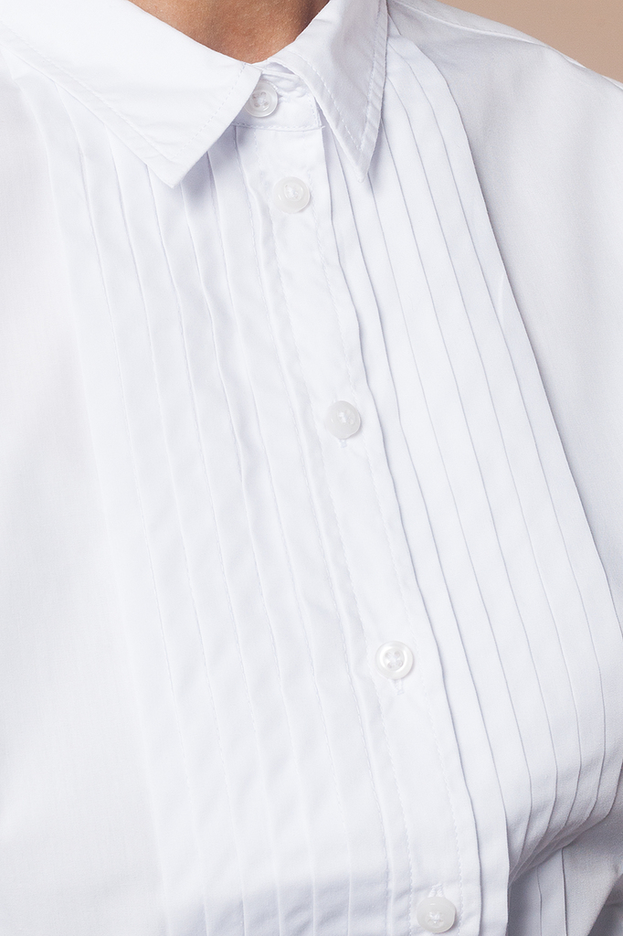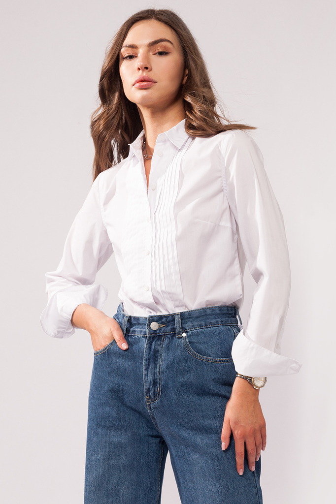 Состав: 62%Хлопок 38%ПЭ Классическая полуприлегающая блузка с эффектвными складками спереди. Стилизована под мужскую сорочку под смокинг. Такая строгость с женственными низами создает соблазнительный ... Показать описаниеобраз, даже когда требуется самый строгий дресс-код. В состав ткани к хлопку добавлен полиэстер, который обеспечивает формоустойчивость, комфорт в уходе и долговечную белизну блузки.