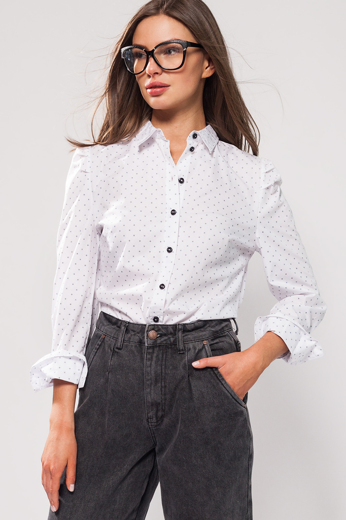 Состав: 62%Хлопок 38%ПЭ Блузка из хлопка с полиэстером. Полиэстер сохраняет гладкость и формоустойчивость ткани, делает ткань проще в уходе. Главным элементом блузки являются трендовые защипы по оката... Показать описанием рукава, которые становятся ведущим акцентом в любом луке. Особенный эффект сохдает игра мемлкого рисунка ткани с контрастными пуговицами блузки.
