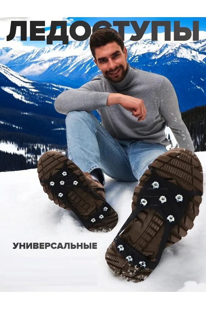 ID товара: 1213757 Сезон: Осень/Зима Ледоступы на обувь универсальные с 8 шипами представляют собой идеальное решение для тех, кто ищет надежную защиту от скольжения на льду и снегу. Эти ледоступы спр... Показать описаниеоектированы с учетом потребностей широкой аудитории, включая спортсменов, любителей активного отдыха и просто тех, кто нуждается в дополнительной поддержке при ходьбе по скользким поверхностям. Каждый набор содержит 8 шипов, которые обеспечивают отличное сцепление с поверхностью, уменьшая риск падения. Универсальный дизайн позволяет использовать ледоступы с различными видами обуви, делая их универсальным выбором для всей семьи. Легкость в установке и снятии делает их удобными в использовании, а прочная конструкция гарантирует долговечность и надежность. Выбирая ледоступы, вы получаете качественный и эффективный способ защиты от опасностей зимней погоды, позволяющий вам наслаждаться активными прогулками, спортом и повседневными делами без опасений за свою безопасность.Ледоступы с 8 стальными шипами звёздочками позволят заниматься активным отдыхом и безопасно совершать прогулки зимой. Предназначены для безопасной ходьбы в гололед. Ледоходы компактны и универсальны - подойдут на женскую и мужскую обувь. В гололед или после ледяного дождя станут для вас настоящим спасением, помогут не только комфортно передвигаться по скользким тротуарам, но защитят от падений и травм. Рекомендации к использованию: Надевать противоскользящие накладки удобнее двумя руками, когда обувь уже на ноге, а не в руках. Удобней надевать в положении сидя. Тяните смелее, резина хорошая и не порвется. В модели со стальными шипами, даже с антикоррозийной обработкой, после носки влагу необходимо стряхнуть.