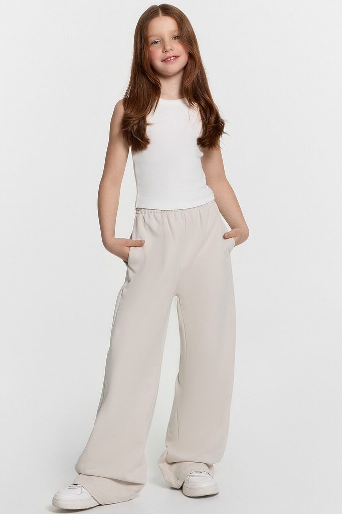 ID товара: 1132213 Акции: -2%, до 11.11.2025 Состав: 100% Хлопок Сезон: Весна/Лето Длина: Полная Фасон: Широкие Вид застежки: Без застежки Посадка: Высокая Тип карманов: В шве Декоративные элементы: К... Показать описаниеарман Утеплитель: Без утепления Стиль: Повседневный Уход: Деликатная стирка при 30 градусах Модель брюк: Прямые Особенности модели: Нет Фактура материала: Футер Страна бренда: Беларусь Страна производства: Беларусь Удобные и модные широкие брюки для девочек, которые идеально подойдут для повседневной носки и создания стильных образов на физкультуру. Данная модель изготовлена из высококачественного натурального хлопка, который отличается превосходными дышащими и гигроскопичными свойствами. Мягкая и приятная на ощупь ткань обеспечит вашей юной моднице комфорт и свободу движений на протяжении всего дня. Широкий крой брюк создает привлекательный силуэт, визуально стройнит и придает образу девочки изюминку. Благодаря эластичному поясу с регулируемым шнурком, они идеально сидят на фигуре. Стильный дизайн с практичными боковыми карманами поможет создать модные луки для школы, игр и прогулок. Рекомендуем!