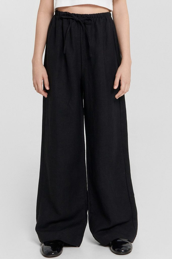ID товара: 1002815 Состав: 53% Лен; 47% Вискоза Сезон: Весна/Лето Вид застежки: Без застежки Посадка: Высокая Тип карманов: В шве Декоративные элементы: Карман Утеплитель: Без утепления Уход: Деликатн... Показать описаниеая стирка при 30 градусах Модель брюк: Прямые Особенности модели: Нет Фактура материала: Тканое полотно Страна бренда: Беларусь Страна производства: Белоруссия Брюки для девочек широкие. Посадка высокая. Пояс цельнокроеный из основного полотна, застрочен с эластичной тесьмой RV40 внутри, по поясу проложены отделочные строчки. В боковых швах обработаны карманы. Низ брюк обработан швом в подгибку.