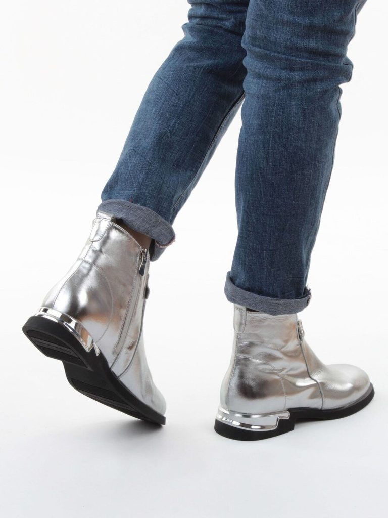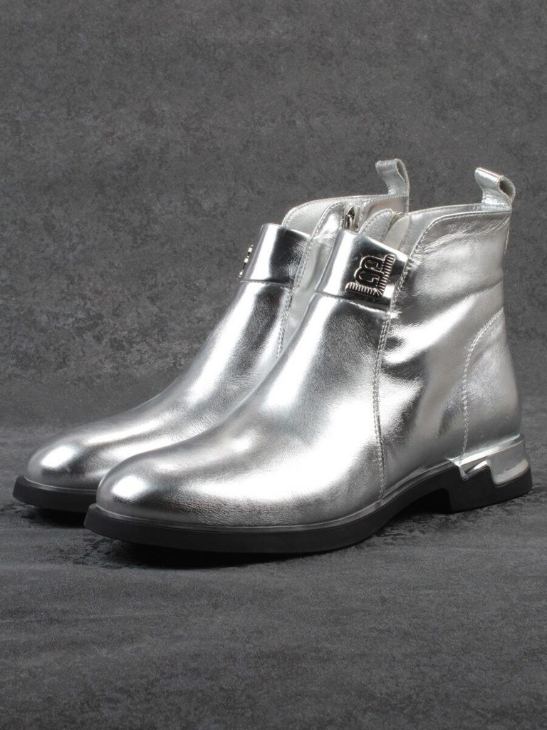 Ботинки демисезонные женские (натуральная кожа, байка) Артикул: 01-B50B-96C GREY/SILVER Основной материал: натуральная кожа Вид кожи основного материала: гладкая. Подкладка: байка. Стелька: байка. Каб... Показать описаниелук: стандартный. Высота каблука: 3 см. Материал подошвы: резина. Толщина подошвы: 1 см. Вид подошвы: стандартная Способ соединения подошвы: клееная Застежка: молния сбоку. Тип мыска: закрытый. Тип задника: закрытый. Витринный образец 39-го размера: Высота обуви по центру: 16,5 см. Объем щиколотки: 35,0 см. Ширина подошвы: 10 см. Высота голени: 13 см. Длина стельки 25,0 см. Чистый вес ботинок без коробки: 800 гр. Цвет: Серый (Серебряный) Длина стельки каждого отдельно взятого размера: 36 длина стельки 23,0 см 37 длина стельки 23,5 см 38 длина стельки 24,5 см 39 длина стельки 25,0 см 40 длина стельки 25,5 см 41 длина стельки 26,0 см