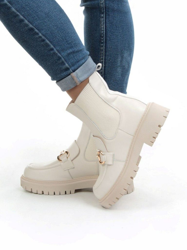 Ботинки демисезонные женские (натуральная кожа, байка) Артикул: 01-5173-3 BEIGE Основной материал: натуральная кожа. Вид кожи основного материала: гладкая. Каблук: стандартный. Высота каблука: 3,5&nbs... Показать описаниеp;см. Материал каблука: пластиковый с резиновой набойкой. Толщина подошвы: 2,0 см. Материал подошвы: резиновая. Вид подошвы: стандартная. Способ соединения подошвы: клееная, прошитая . Подкладка: байка. Стелька: байка. Застежка: нет. Тип мыска: закрытый Тип задника: закрытый Дополнительная информация: Витринный образец 39-го размера. Высота обуви по центру: 14,0 см Длина стельки: 24,5 см. Модель маломерит на один размер! Длина стельки каждого отдельно взятого размера: 36 длина стельки 22,5 см. 37 длина стельки 23,0 см. 38 длина стельки 23,5 см. 39 длина стельки 24,5 см. 40 длина стельки 25,0 см. 41 длина стельки 25,5 см. Цвет: Бежевый.