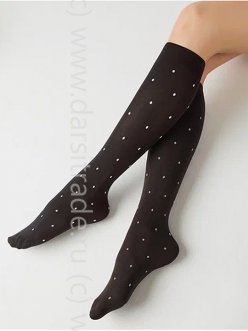 Женские полуматовые эластичные гольфы 20 den с рисунком «горошек». Удобная резинка «ТОП комфорт» обеспечивает превосходное облегание - гольфы отлично ощущаются на ноге. Невидимый усиленный мысок отлич... Показать описаниено сочетается с легкой, открытой обувью - босоножками балетками и туфлями.