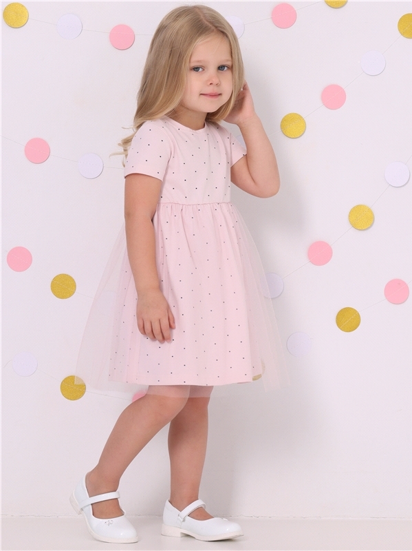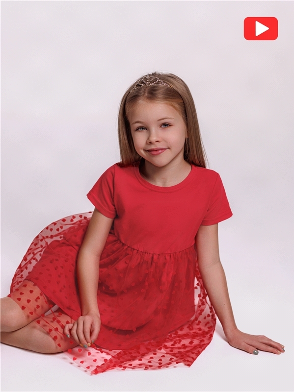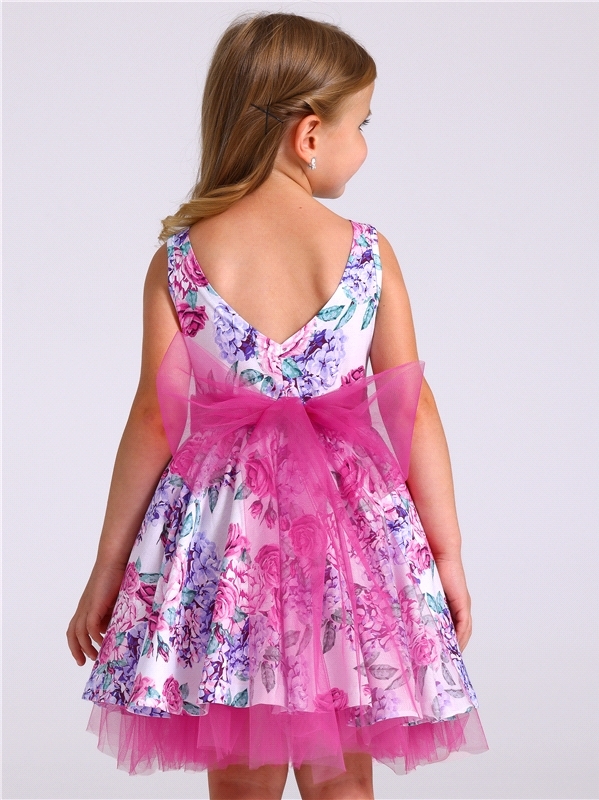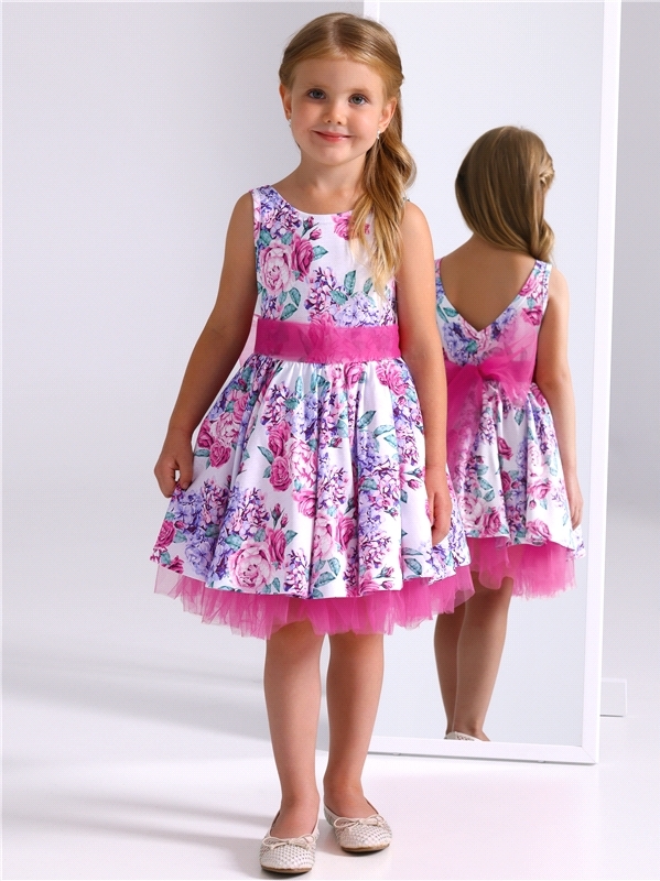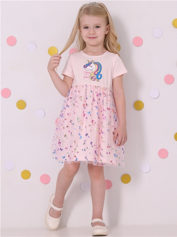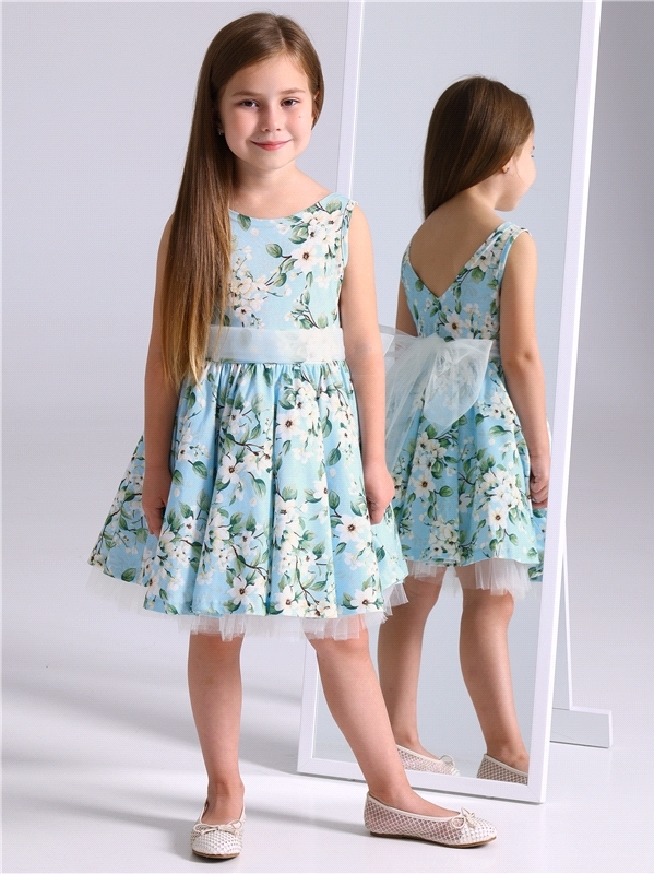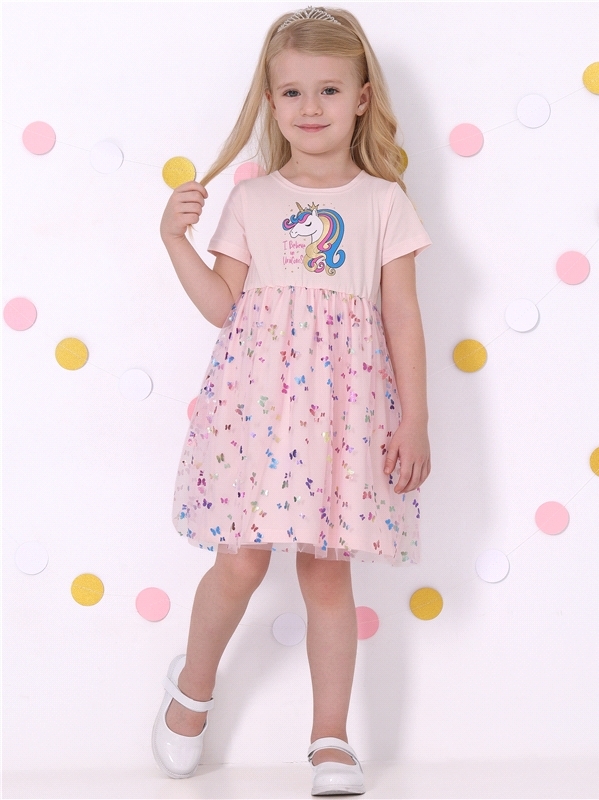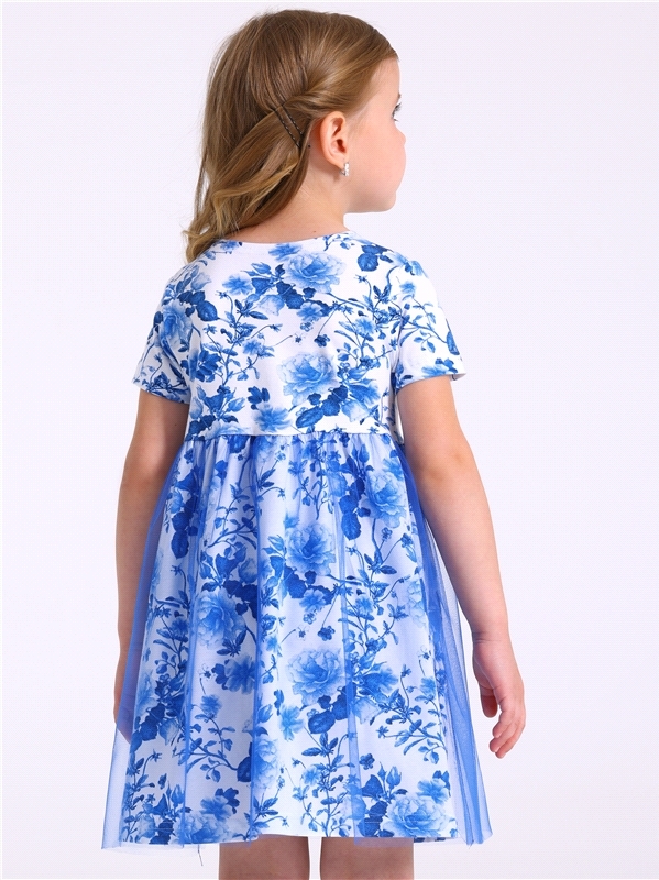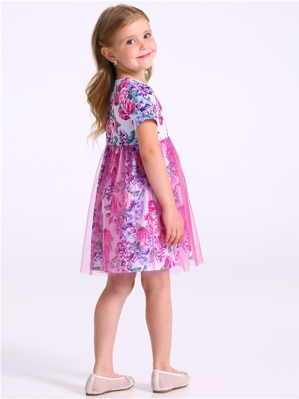 Нарядное платье из кулира – легкого хлопкового полотна с лайкрой. Изделие трапециевидного силуэта:отрезное по линии талии:короткие рукава со спущенной линией плеча:юбка продублирована присборенной по ... Показать описаниелинии талии мягкой сеткой:украшено стильным принтом с глиттером. Уход: только деликатная стирка при температуре 40 градусов:без предварительного замачивания. Изделия с печатью и декором перед стиркой необходимо вывернуть на изнаночную сторону. Состав: кулир с лайкрой / хлопок 90% + лайкра 8% + пэ 2%.