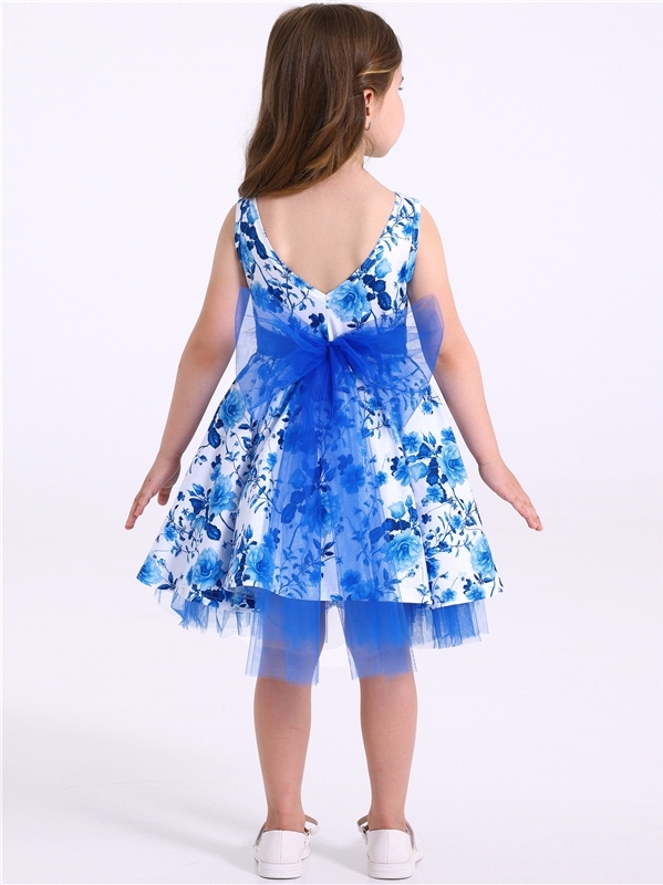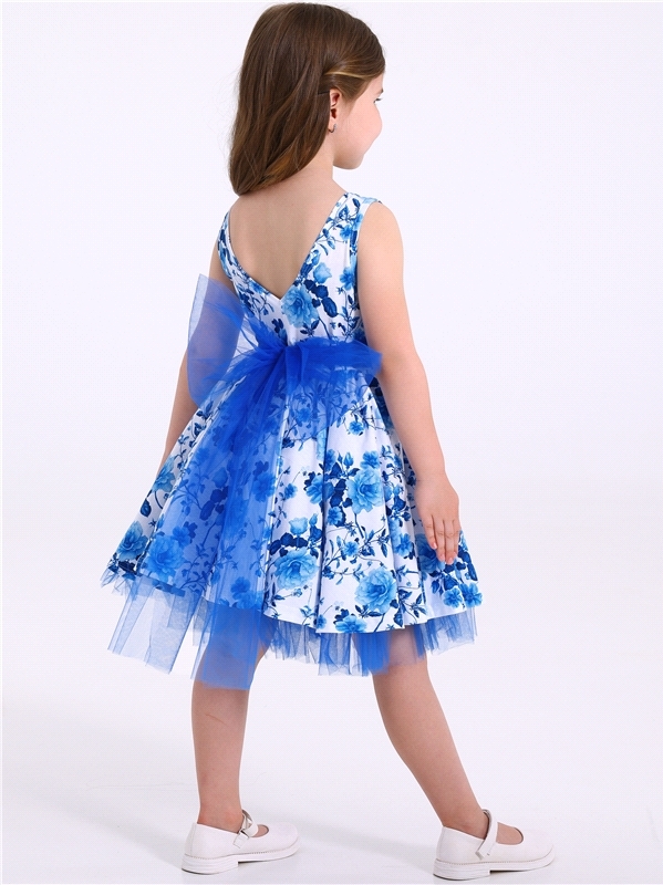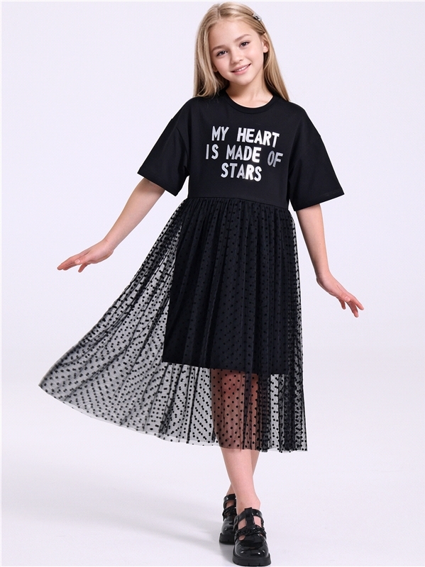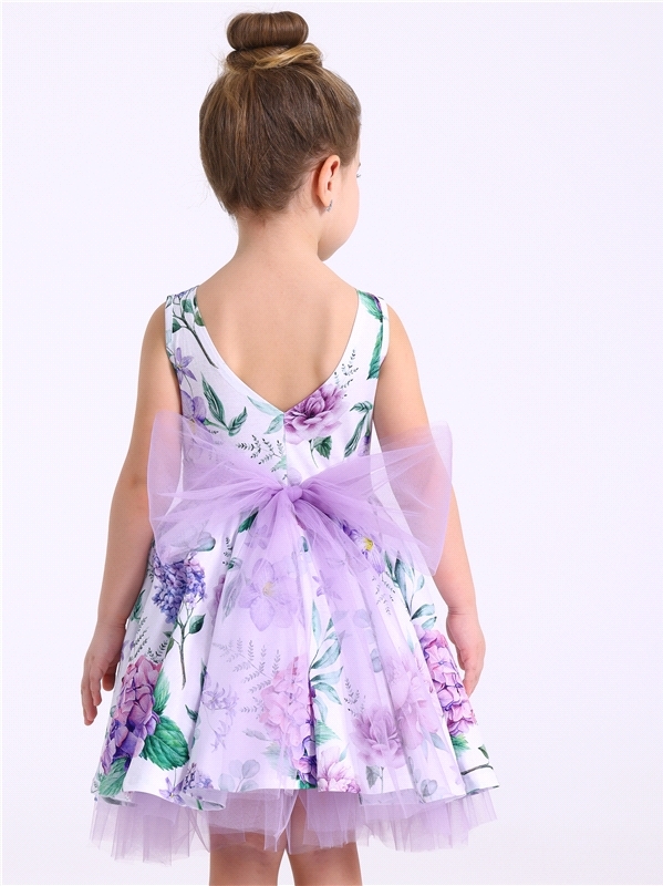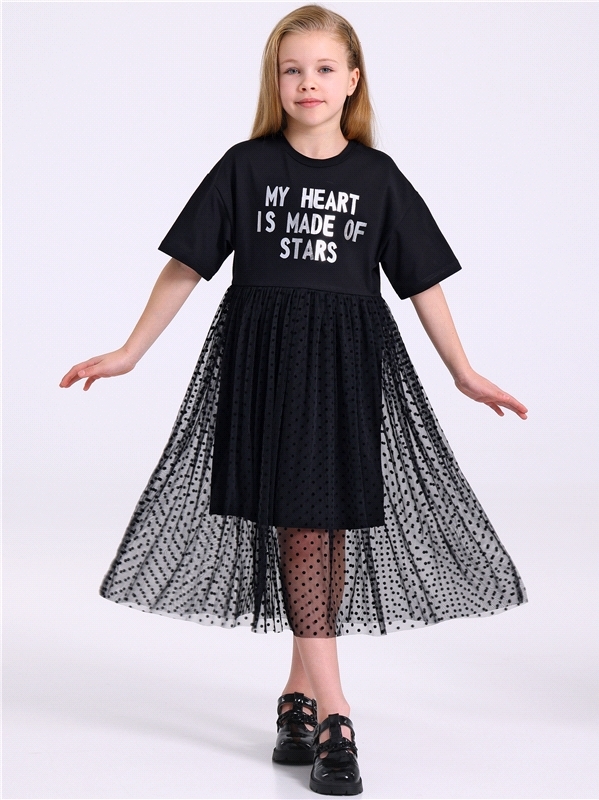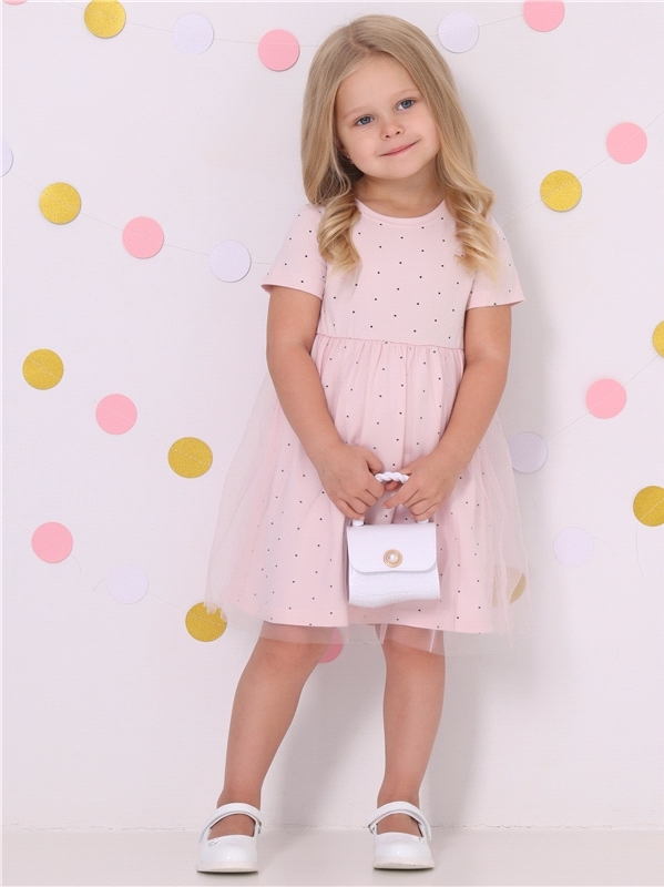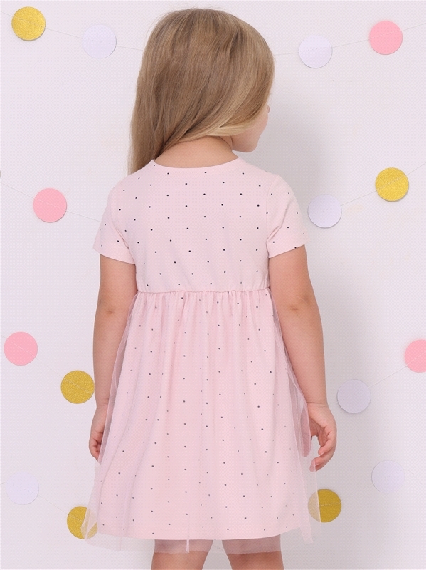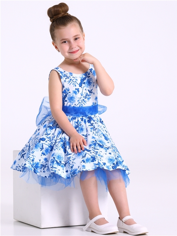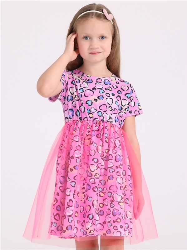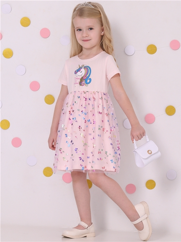 Нарядное платье из кулира – легкого хлопкового полотна с лайкрой. Изделие трапециевидного силуэта:отрезное по линии талии:короткие рукава со спущенной линией плеча:юбка продублирована присборенной по ... Показать описаниелинии талии мягкой сеткой:украшено стильным принтом с глиттером. Уход: только деликатная стирка при температуре 40 градусов:без предварительного замачивания. Изделия с печатью и декором перед стиркой необходимо вывернуть на изнаночную сторону. Состав: кулир с лайкрой / хлопок 90% + лайкра 8% + пэ 2%.