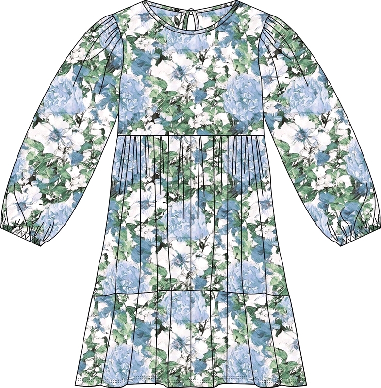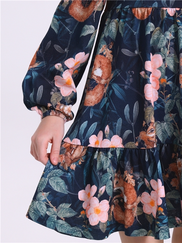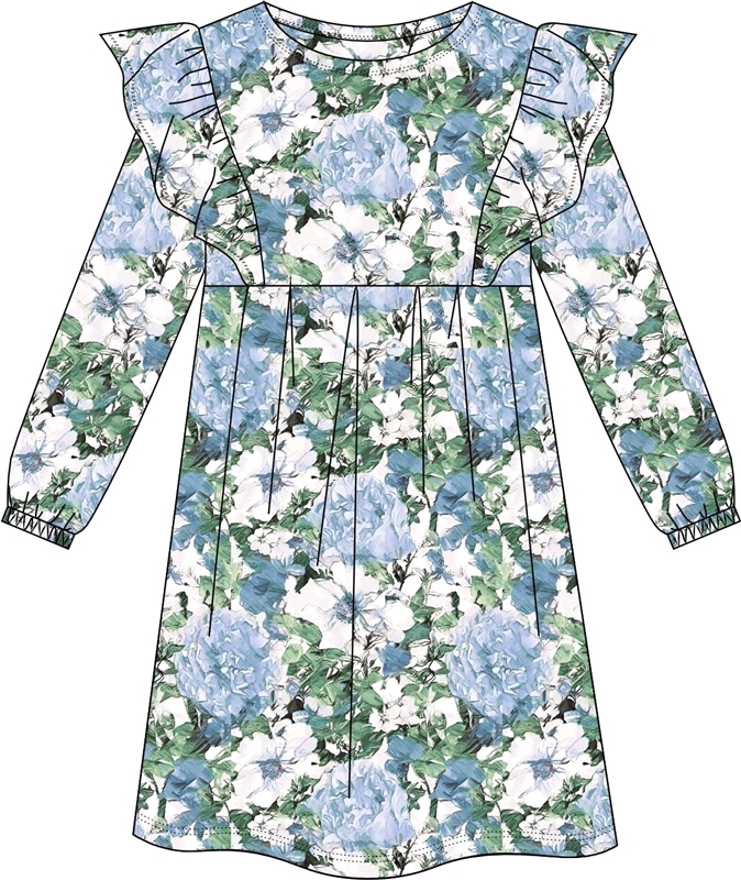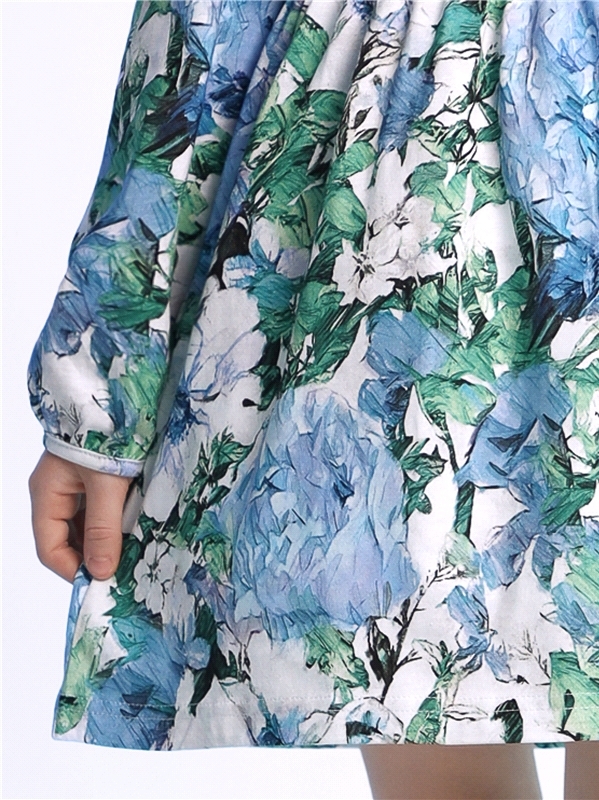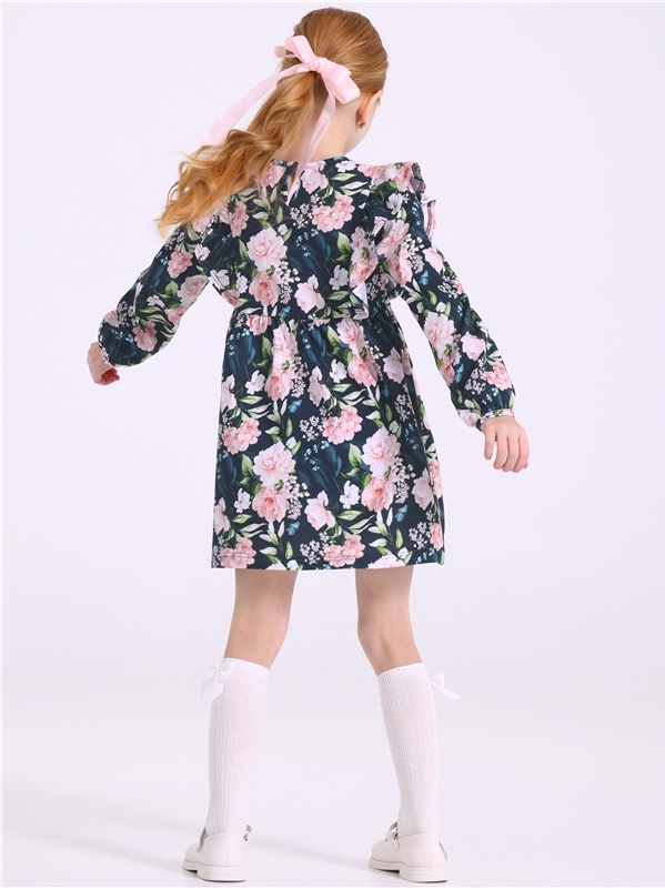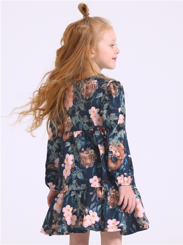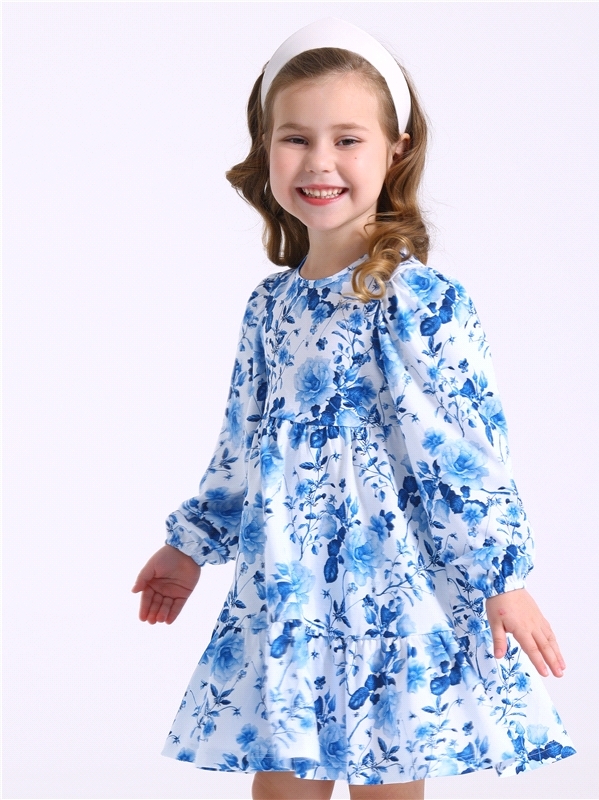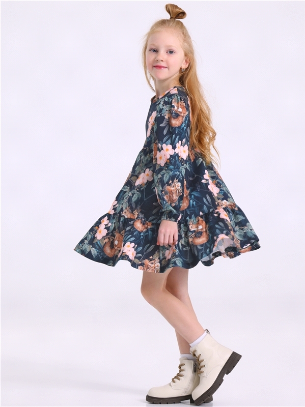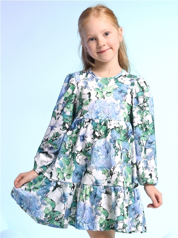 Платье для девочки выполнено из кулира - легкого хлопкового полотна:с набивным принтом. Изделие с длинными рукавами и с присборенной по талии юбочкой:на полочке и спинке воздушные оборки:застежка на п... Показать описаниеуговицу по спинке. Уход: только машинная стирка (руками не стирать!) при температуре 40 градусов:без предварительного замачивания. Состав: кулир / хлопок 100%.
