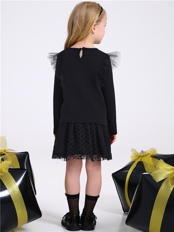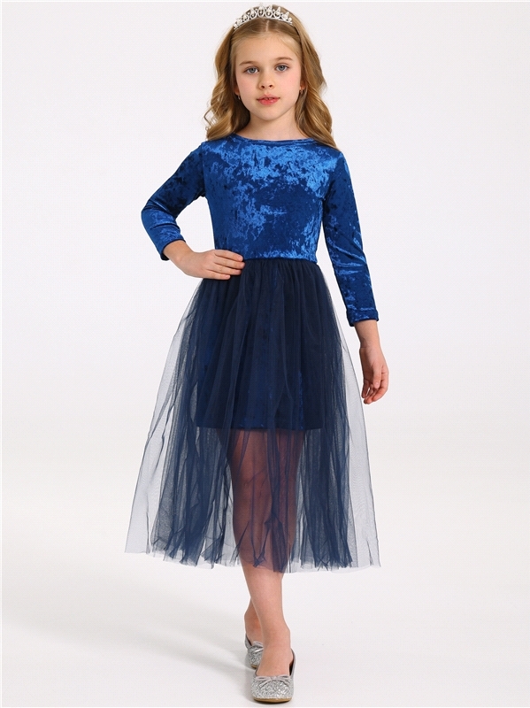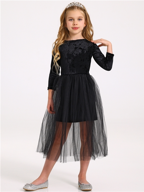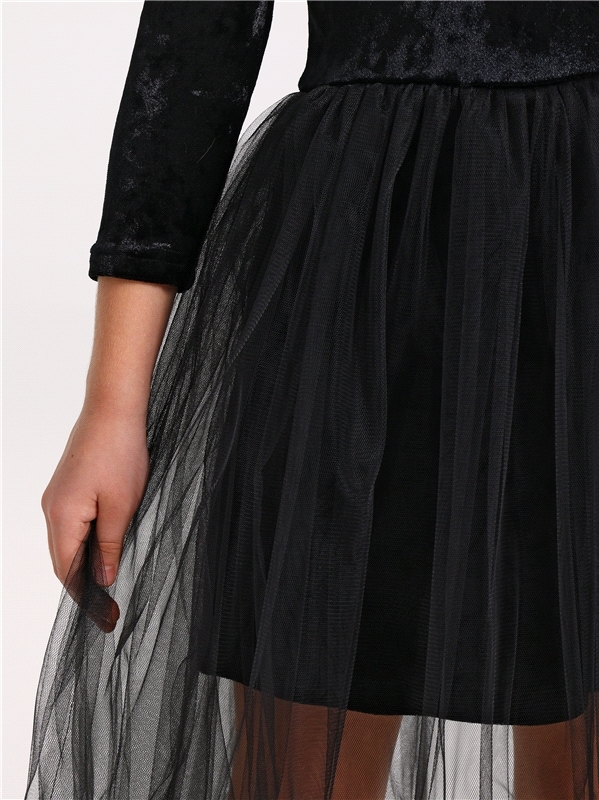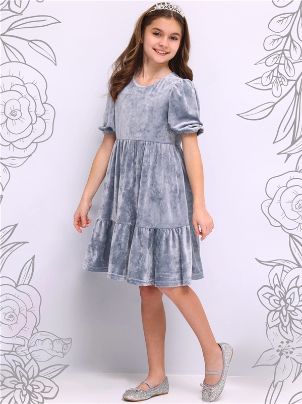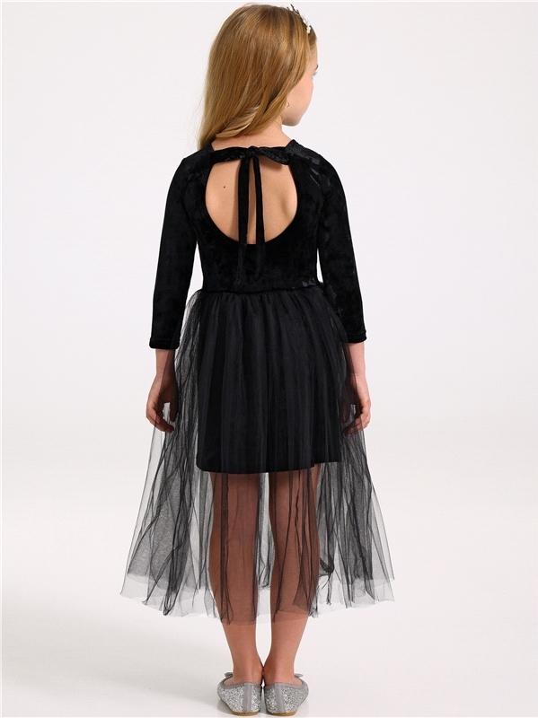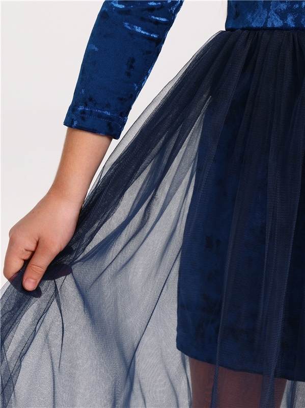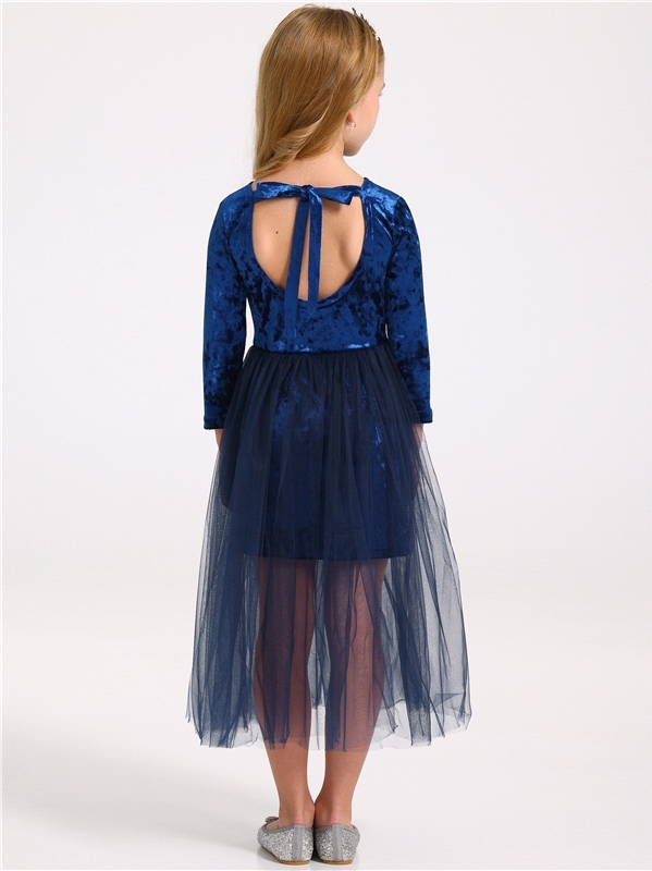Стильное платье для девочек из нежного бархатного полотна. Изделие прилегающего силуэта:с рукавами длиной 3/4 и пышной юбочкой из сетки. На спинке эффектный вырез и завязки. Уход: только деликатная ст... Показать описаниеирка при температуре 40 градусов:без предварительного замачивания. Состав: велюр / ПЭ 96% + лайкра 4%.