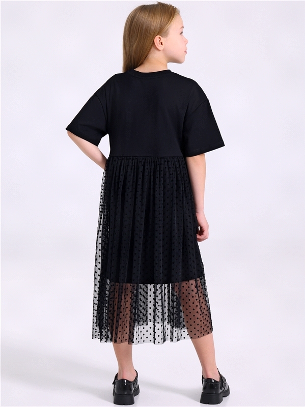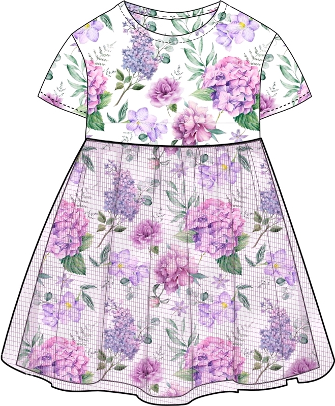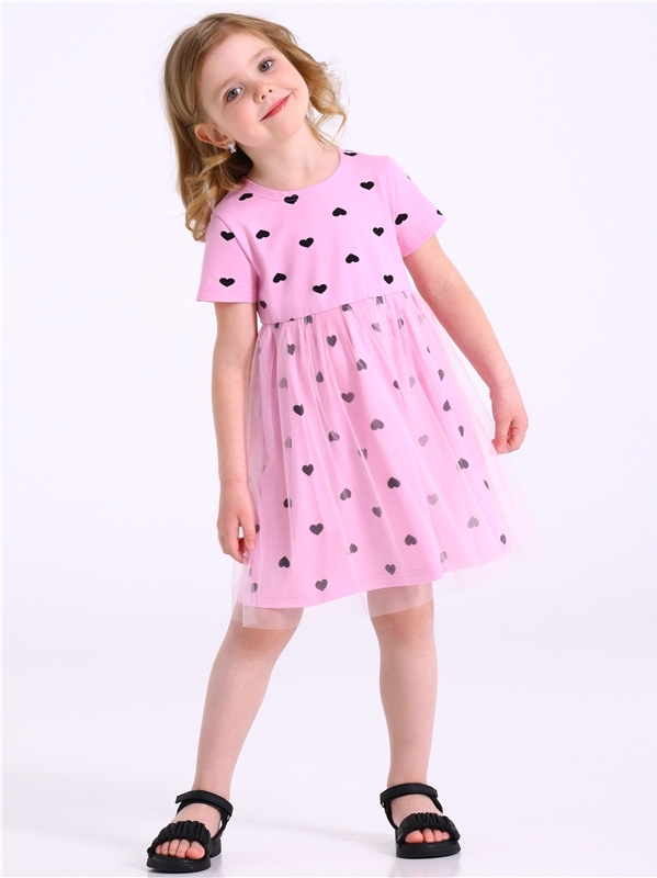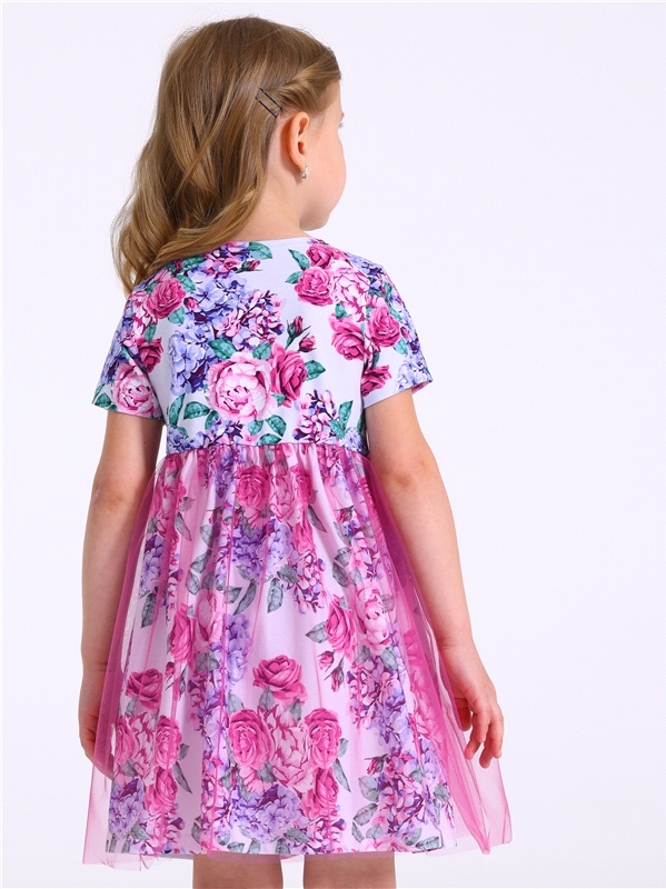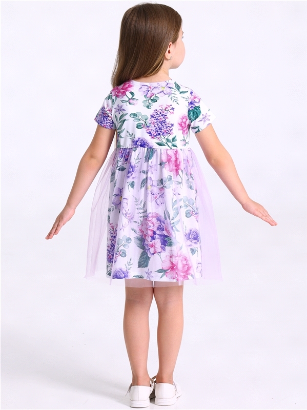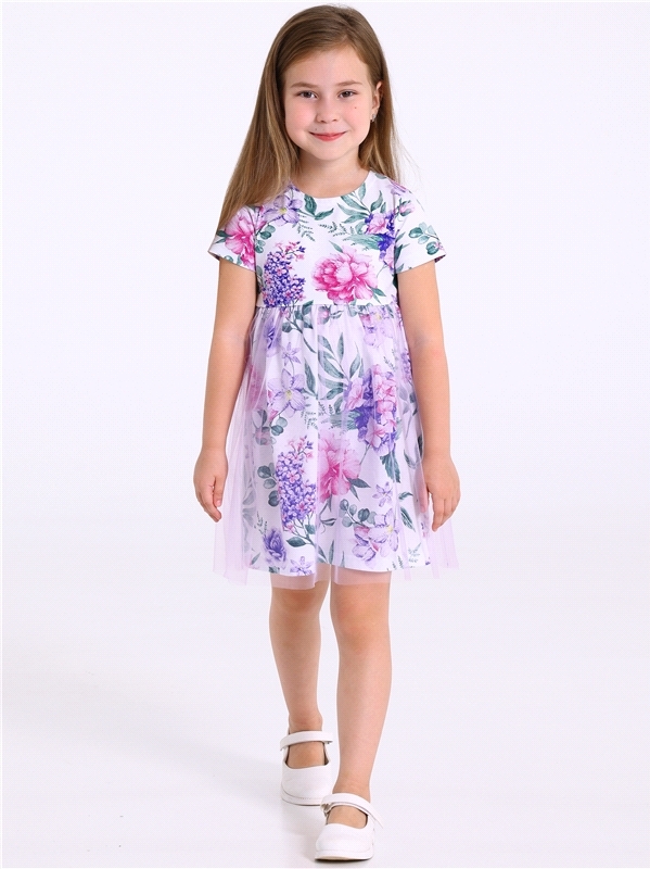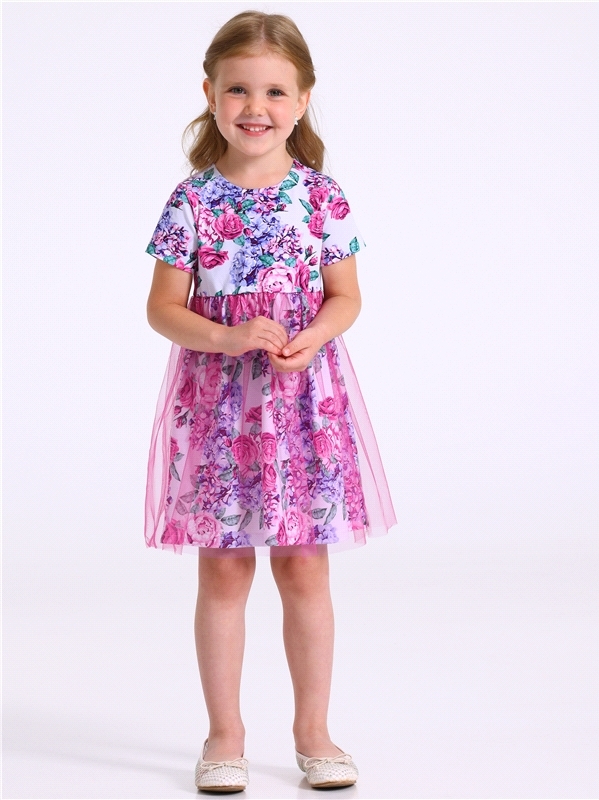 Платье из легкокого хлопкового полотна с лайкрой. Изделие полуприлегающего силуэта:с отрезной юбкой по линии талии:с круглым вырезом горловины и короткими рукавами. Юбка двуслойная из кулира с лайкрой... Показать описание и магкой сетки. На полочке выполнена печать. Уход: только деликатная стирка при температуре 40 градусов:без предварительного замачивания. Состав: кулир с лайкрой / хлопок 90% + лайкра 8% + пэ 2%.