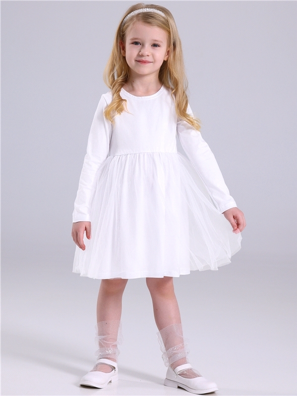 Платье для девочки выполнено из кулира – лёгкого хлопкового полотна. Изделие с длинными рукавами и с присборенной по талии юбочкой:застежка на пуговицу по спинке. Отличный наряд для маленьких принцесс... Показать описание! Уход: только машинная стирка (руками не стирать!) при температуре 40 градусов:без предварительного замачивания. Состав: кулир / хлопок 100%.