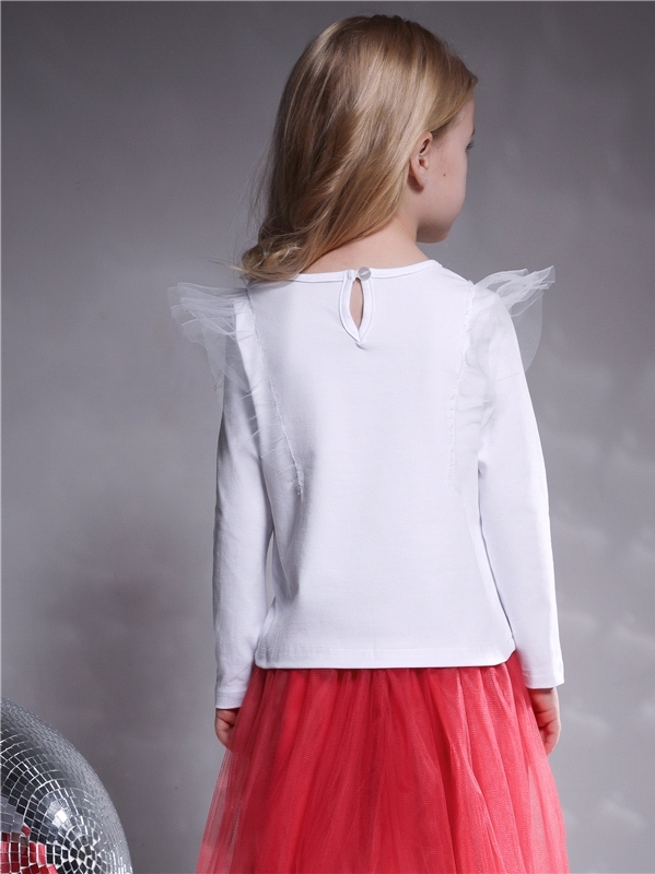 Лонгслив для девочки выполнен из легкого хлопкового полотна с лайкрой. Изделие прямого силуэта с длинными рукавами и округлым вырезом горловины:по спинке застежка на пуговицу:украшено оборками из возд... Показать описаниеушной сеточки и нежным принтом. Отличный выбор как для праздника:так и на каждый день. Уход: только деликатная стирка при температуре 40 градусов:без предварительного замачивания. Изделия с печатью и декором перед стиркой необходимо вывернуть на изнаночную сторону. Состав: кулир с лайкрой / хлопок 90% + лайкра 8% + пэ 2%.