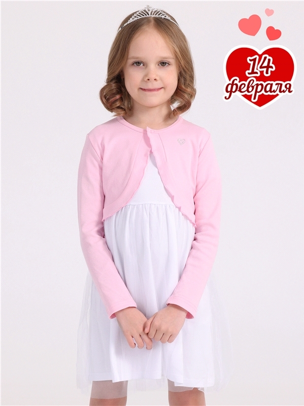 Болеро для девочки выполнено из эластичного полотна. Изделие с длинными рукавами:застегивается на кнопку:украшено оборкой и стразами. Уход: только машинная стирка (руками не стирать!) при температуре ... Показать описание40 градусов:без предварительного замачивания. Изделия с печатью и декором перед стиркой необходимо вывернуть на изнаночную сторону. Состав: ластик / хлопок 100%.