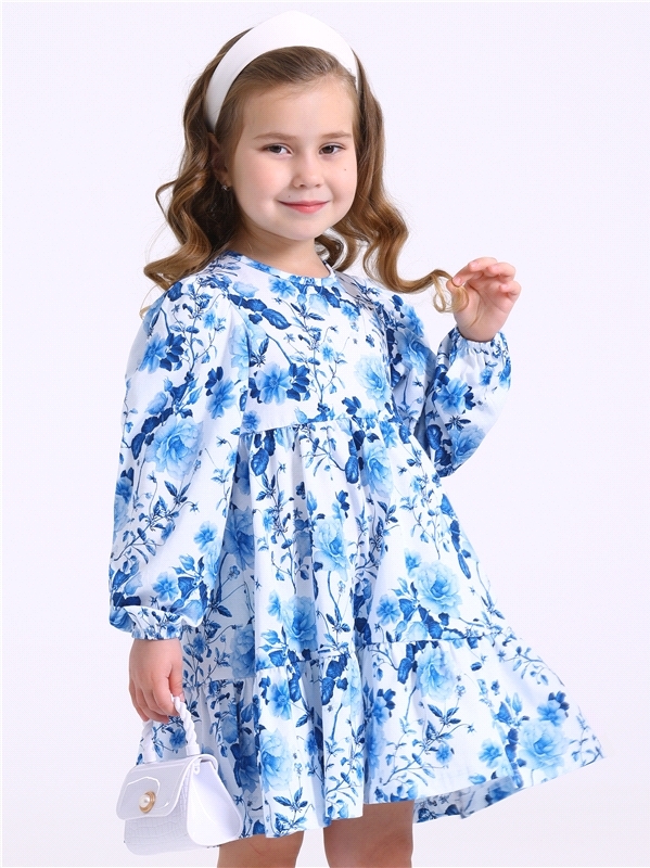 Платье для девочки выполнено из кулира – лёгкого хлопкового полотна. Изделие трапециевидного силуэта:отрезное по талии:длинные рукава-фонарики собраны по низу на эластичную тесьму:застежка по спинке н... Показать описаниеа пуговицу:юбка украшена широким воланом. Уход: только машинная стирка (руками не стирать!) при температуре 40 градусов:без предварительного замачивания. Состав: кулир / хлопок 100%.
