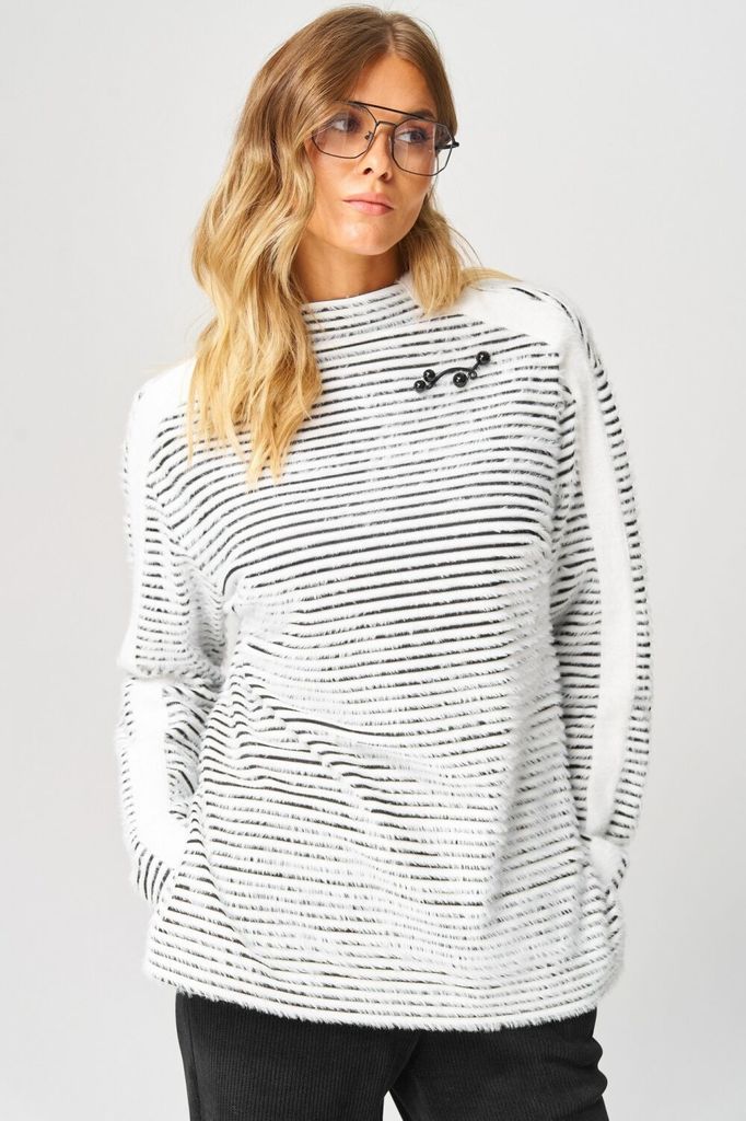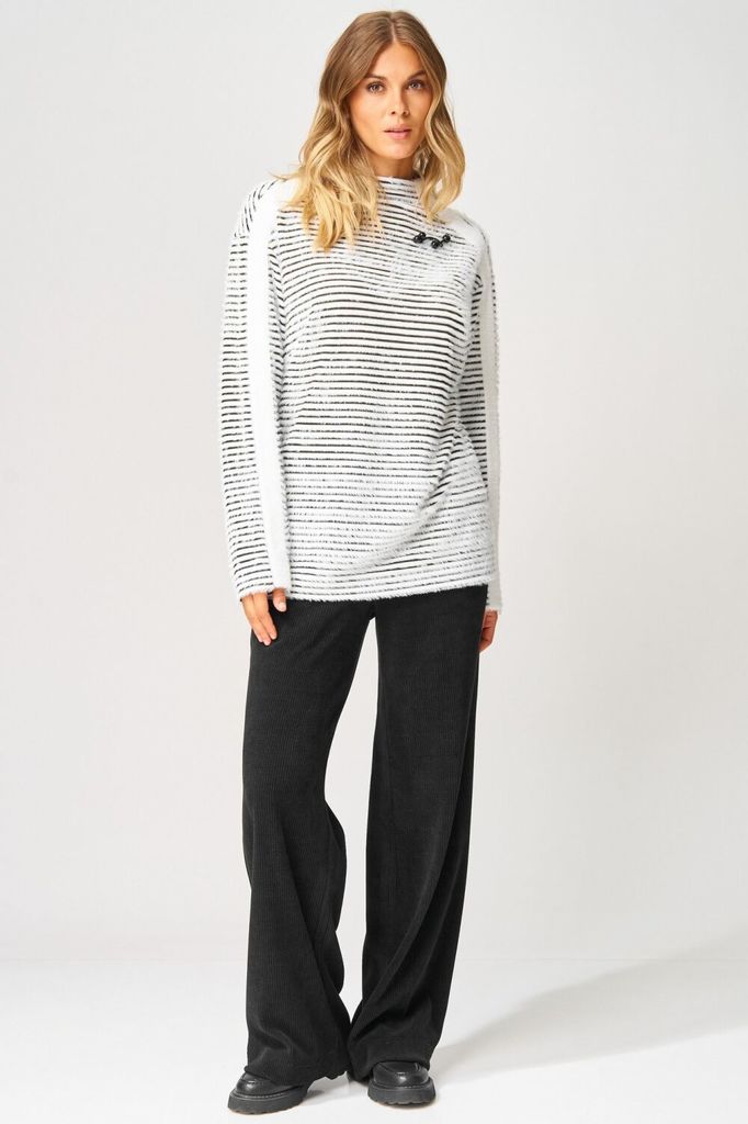 Состав: Вискоза-15%; ПЭ-35%; ПА-50%; Мягкий трикотажный джемпер от LAIKONY свободного силуэта длиной до линии бедер. Вырез горловины округлой формы, с втачной бейкой. Детали переда с рельефными швами,... Показать описание которые заканчиваются застежкой на функциональную тесьму-молнию и с вставкой из декоративной ткани. Молнии позволяют регулировать ширину и длину изделия. Джемпер со спущенной линией плеча, рукава втачные одношовные с притачными манжетами. Трикотаж средней плотности, хорошо тянется. Декор может отличаться от представленного на фотографии. Длина изделия по спинке 66 см, длина рукава 55-53 см от шва втачивания в зависимости от размера. Уютный оригинальный джемпер для повседневного использования. Образ на фото с нашими брюками из модного трикотажного вельвета L-693-2.