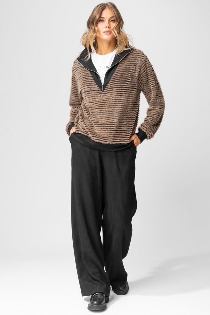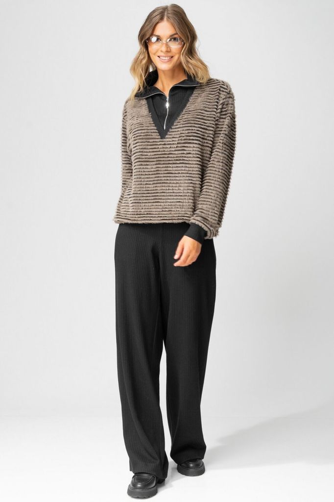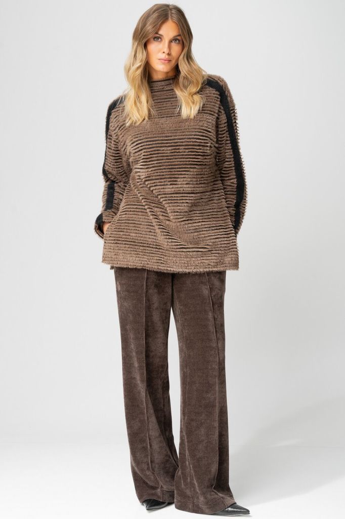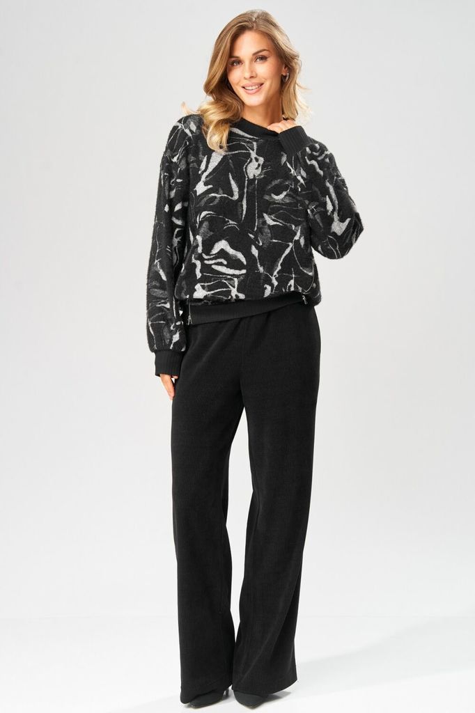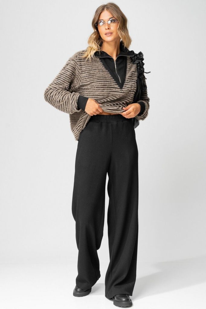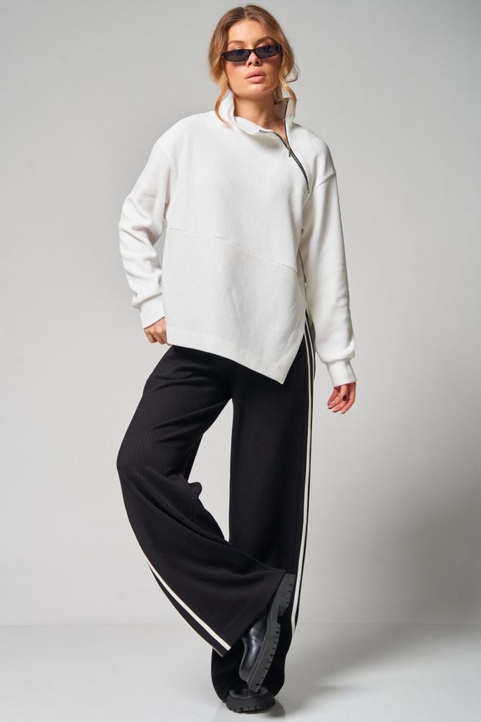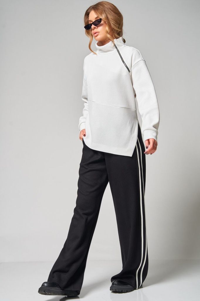 Состав: Джемпер: ПЭ-88%; Спандекс-5%; Ангора-7%; Брюки: Вискоза-32%; ПЭ-52%; Спандекс-5%; Нейлон-13%; Стильный трикотажный комплект от LAIKONY свободного силуэта, состоящий из джемпера и брюк. Джемпер... Показать описание длиной до линии бедер. Вырез горловины джемпера по переду «V-образной» формы, с втачным воротником с застежкой на декоративную тесьму-молнию. Спинка цельная. Рукава втачные одношовные, с притачными манжетами. Линия плача спущена. По низу джемпера идет притачная планка контрастного цвета. Длина джемпера по спинке 62 см, длина рукава 58 см от шва втачивания в зависимости от размера. Брюки широкие к низу. Пояс притачной, пояс вставлена эластичная тесьма. В боковых швах обработаны наклонные карманы. Длина брюк 104 см. Декор может отличаться от представленного на фотографии. Трикотаж средней плотности, тянется. Наш модный комплект идеально подойдет для повседневного использования.