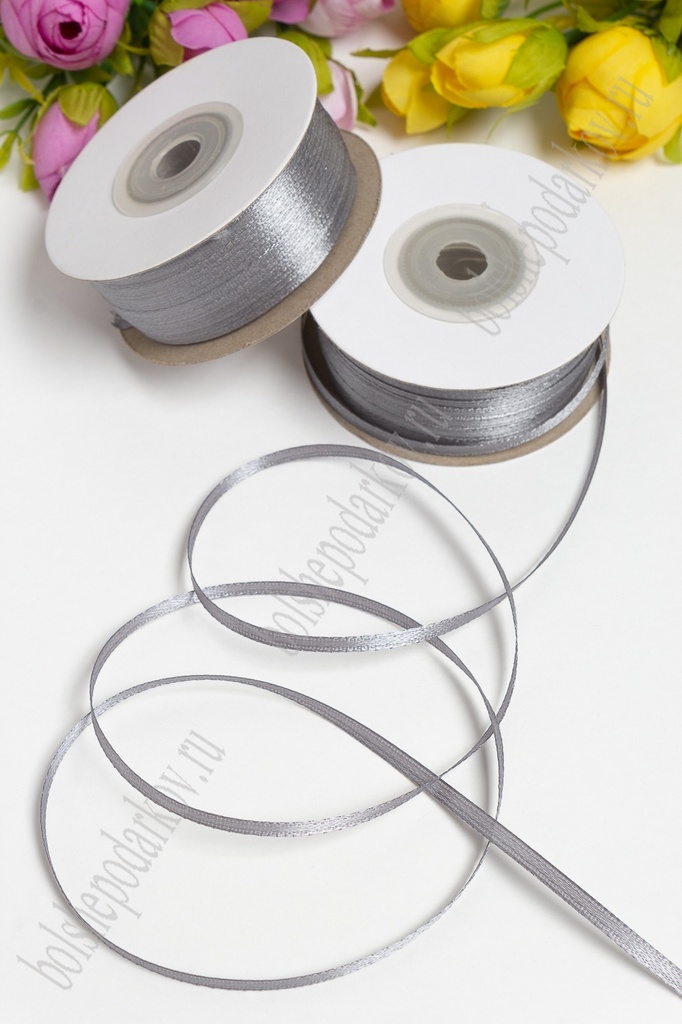 Лента атласная 0,3 см*90 ярд (SF-1363) серый №179 Вопросы по товару
