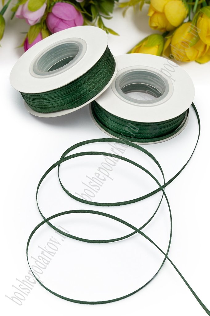 Лента атласная 0,3 см*90 ярд (SF-1363) темно-зеленый №049 Вопросы по товару