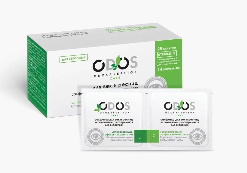 ODOSASEPTICA САЛФЕТКА ДЛЯ ВЕК И РЕСНИЦ УСПОКАИВАЮЩАЯ ДЛЯ ВЗРОСЛЫХ СТЕРИЛЬНАЯ - салфетки ODOS позволяют бережно очистить глаза от естественных глазных выделений, загрязнений и мелких инородных частиц н... Показать описаниеа веках и ресницах. Состав адаптирован к pH слезы, не требует смывания. Не содержит ароматических добавок, консервантов и красителей. Размер салфетки: 60х100 мм