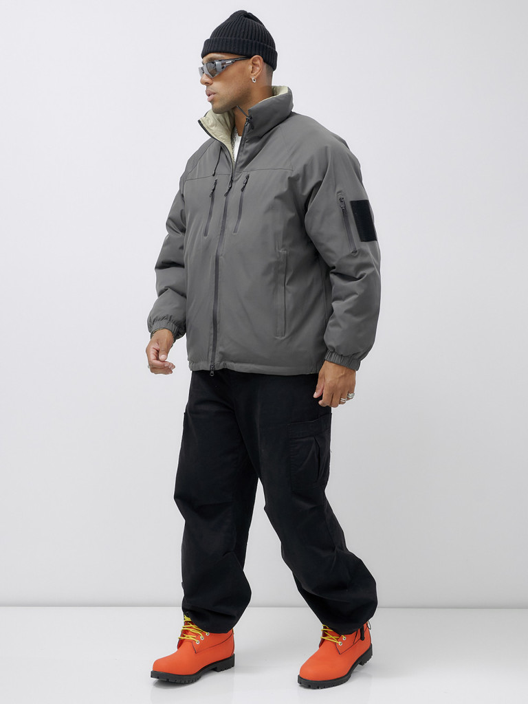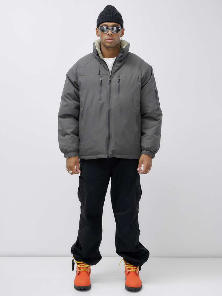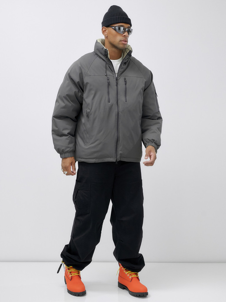 Куртка двухсторонняя мужская молодежная зимняя серого цвета 25308SrВопросы по товару