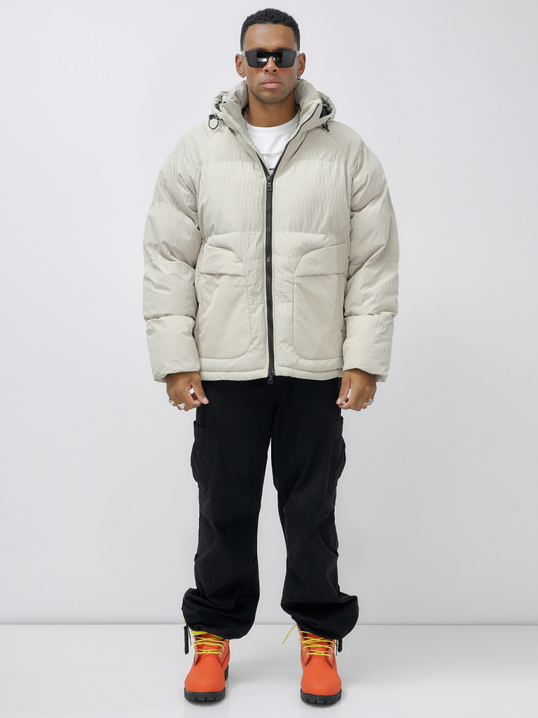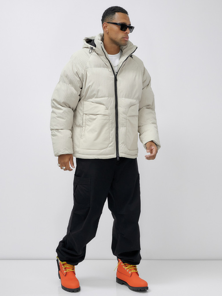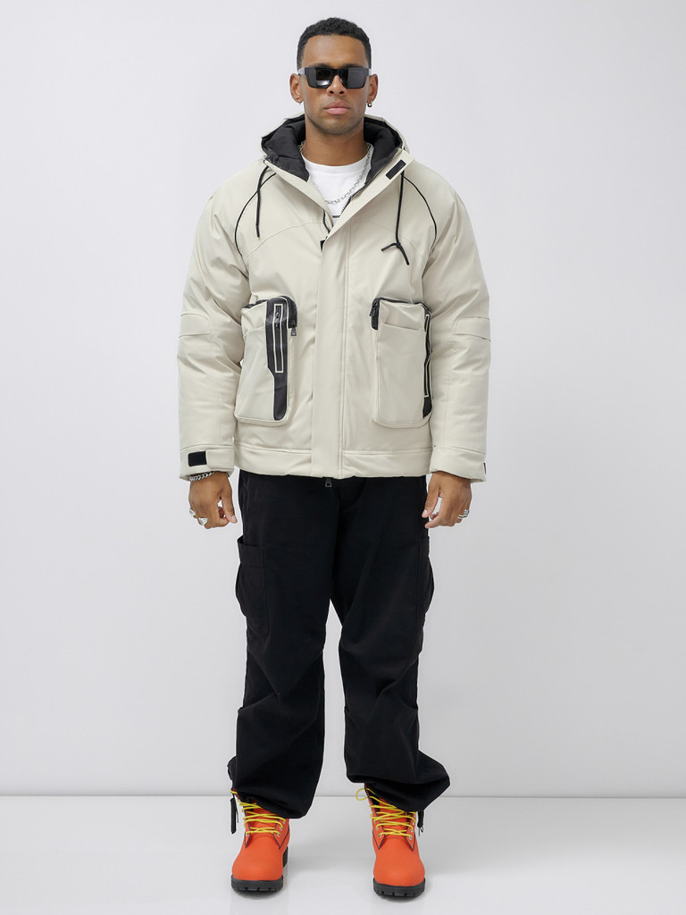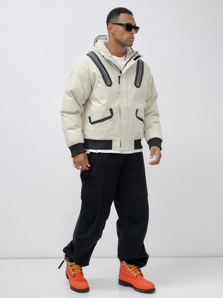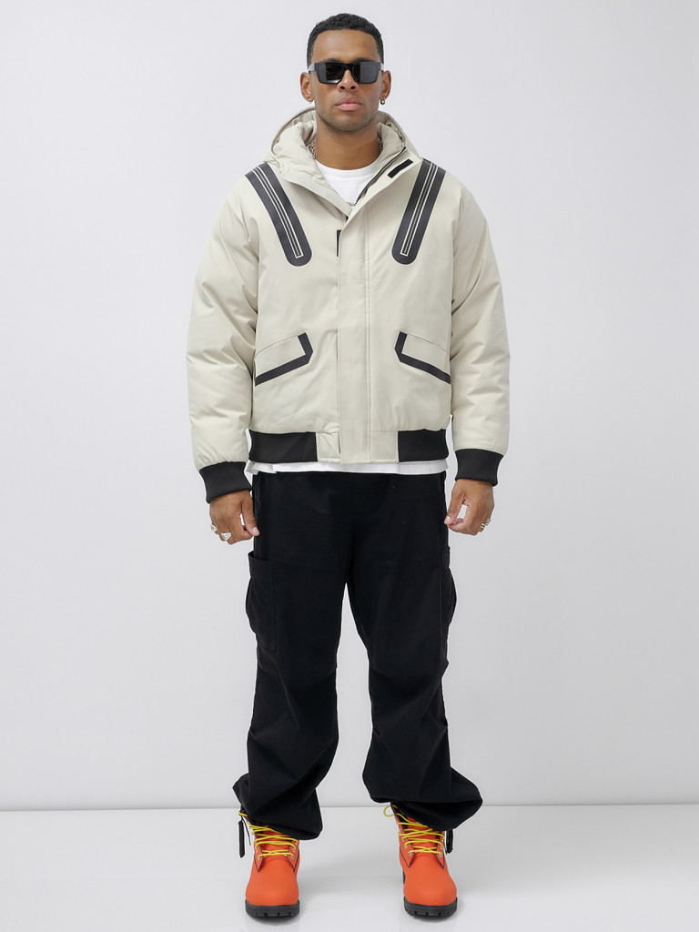 Куртка молодежная мужская зимняя с капюшоном бежевого цвета 25307BВопросы по товару