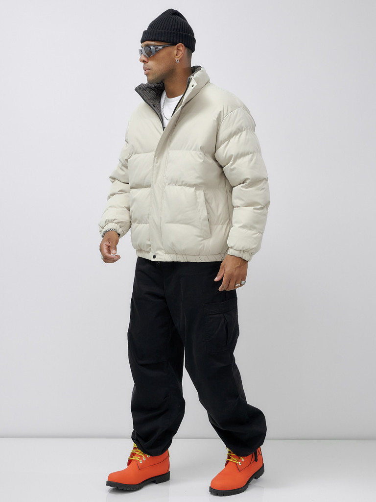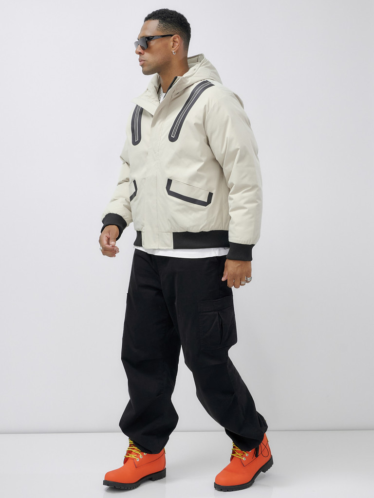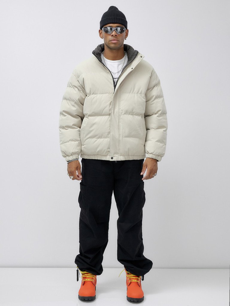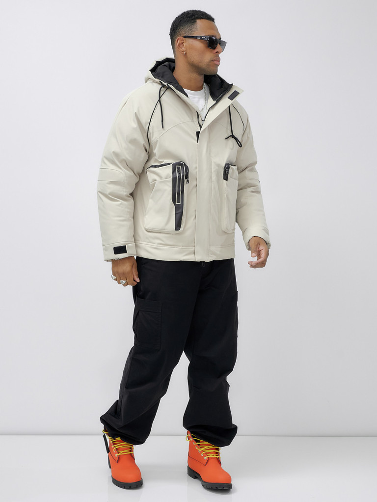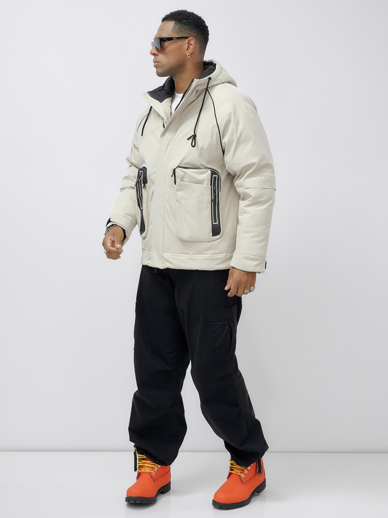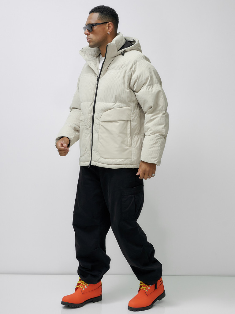 Куртка молодежная мужская зимняя с капюшоном бежевого цвета 25307BВопросы по товару