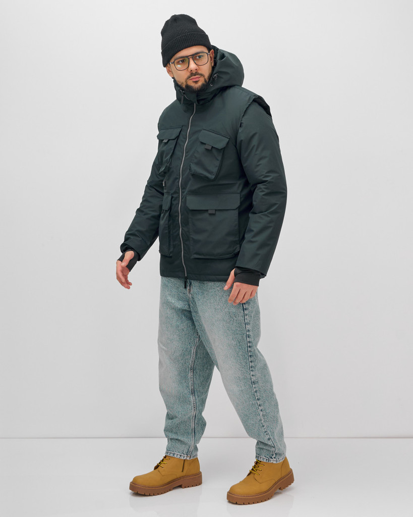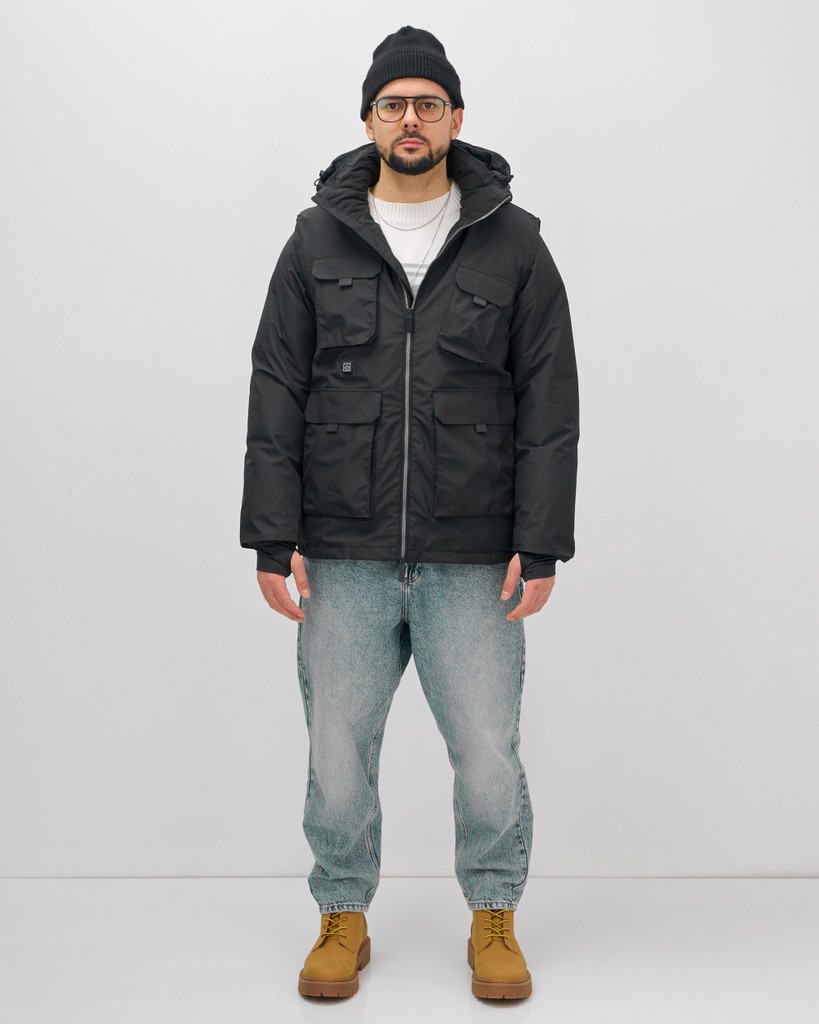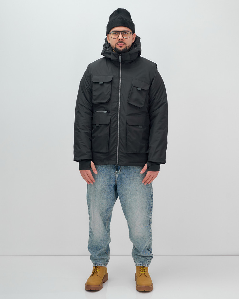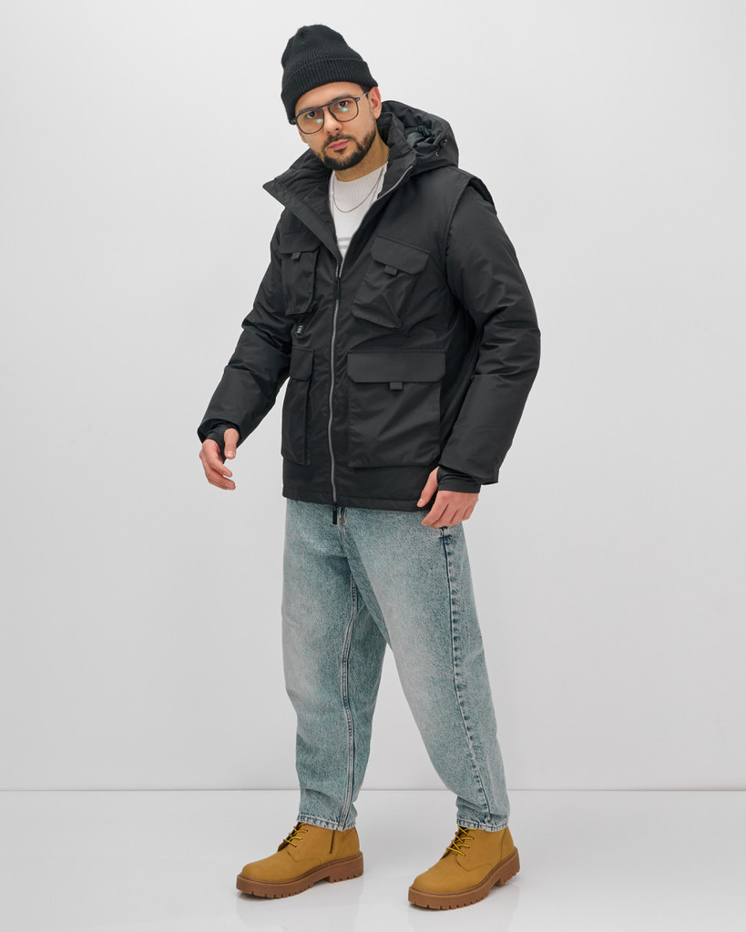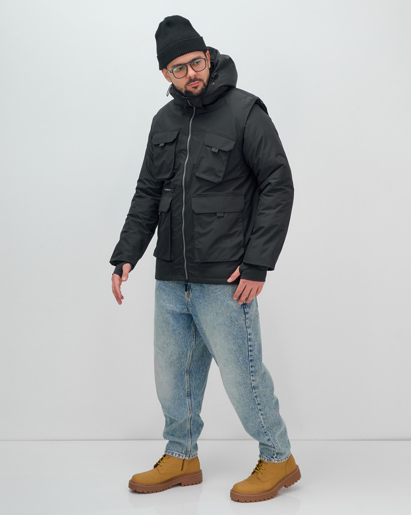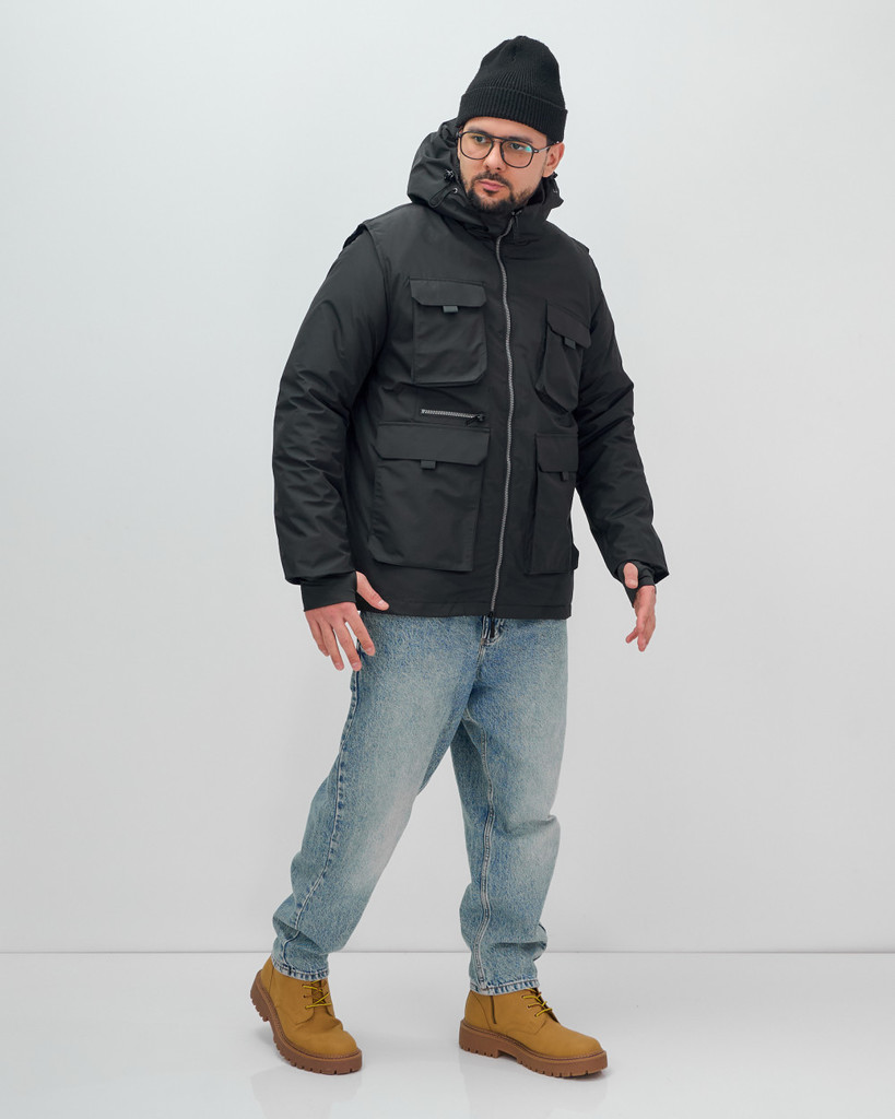 Куртка - жилетка трансформер 2 в 1 мужская зимняя черного цвета 2409ChВопросы по товару