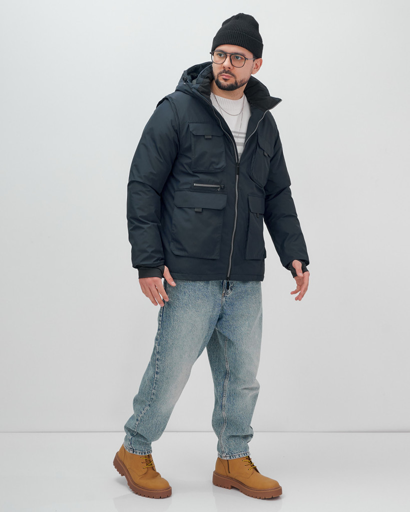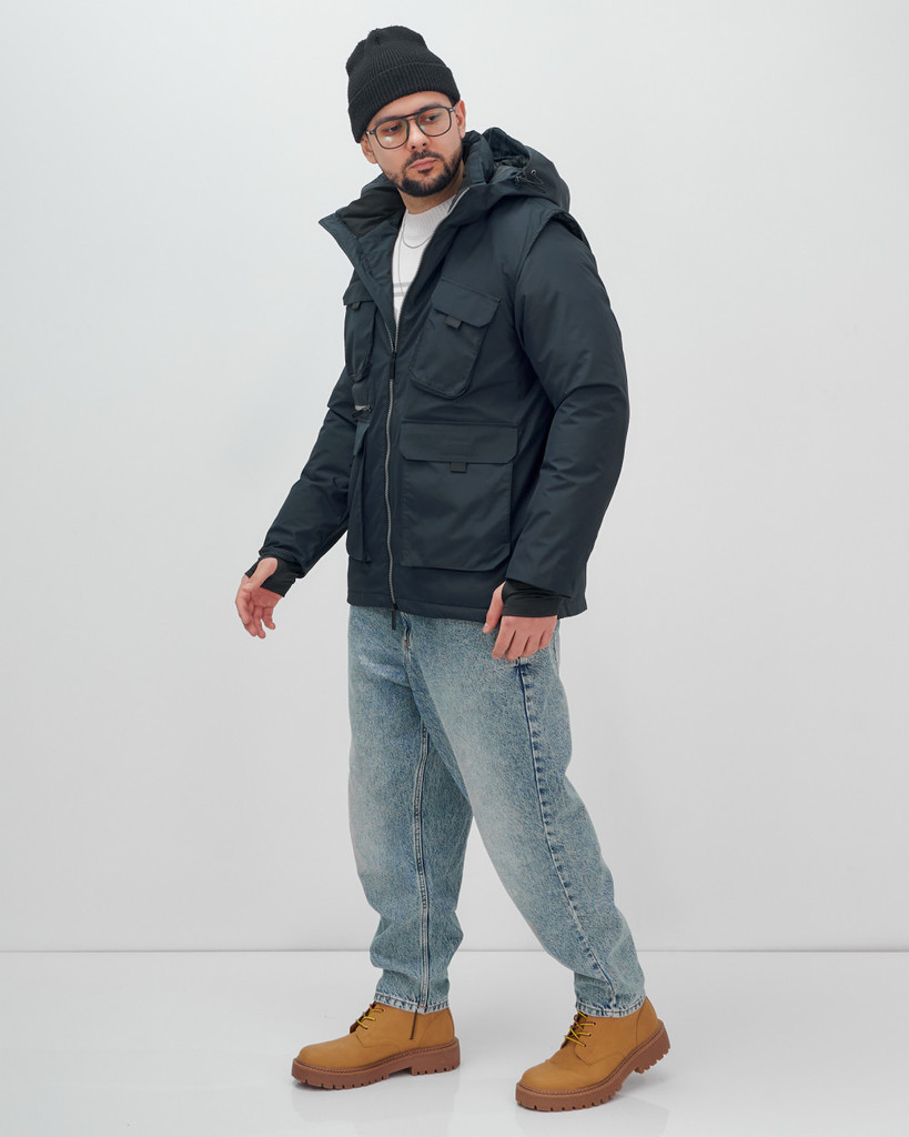 Куртка - жилетка трансформер 2 в 1 мужская зимняя темно-синего цвета 2409TSВопросы по товару