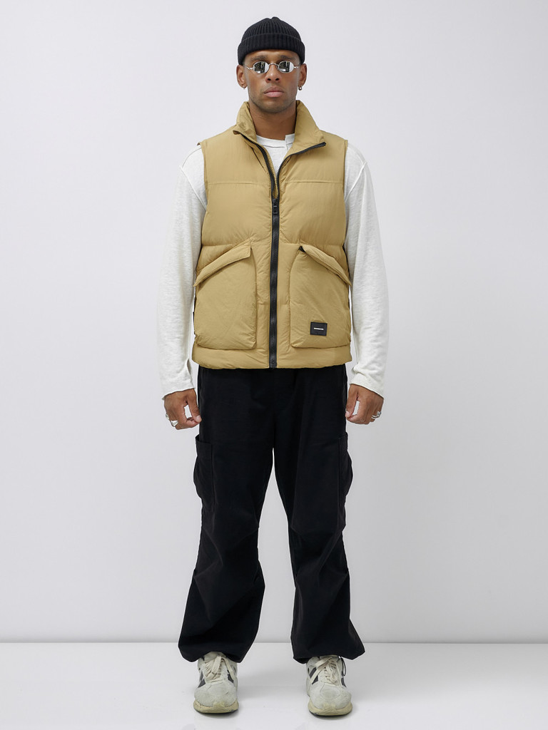 Жилет мужской утепленный спортивный бежевого цвета 15326BВопросы по товару