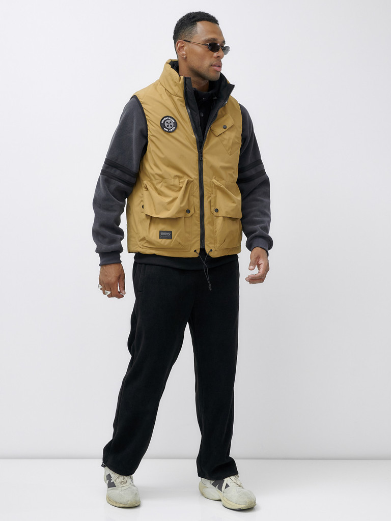 Жилет мужской утепленный спортивный горчичного цвета 15323GВопросы по товару