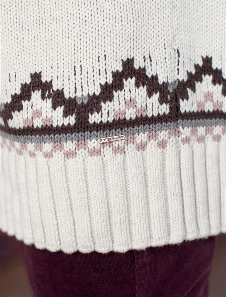 Состав: 60%Хлопок 40%ПАН (акрил) Плотность: 5 GG Размер товара на первом фото: 42 Свитер фактурной вязки выполнен из хлопковой пряжи с добавлением акрила. Уютная модель в скандинавском стиле внесет эс... Показать описаниететику зимнего загородного отдыха в любой гардероб. Мягкая пряжа очень приятная к телу хорошо поддерживает тепло при этом не перегревая. Отлично держит форму даже после множества стирок. Свободный силуэт позволяет носить под низ футболки, лонгсливы и топы. Изделие дополнено металлическим логотипом бренда.
