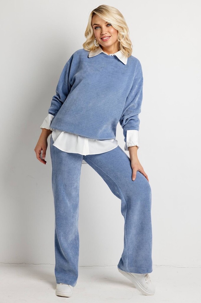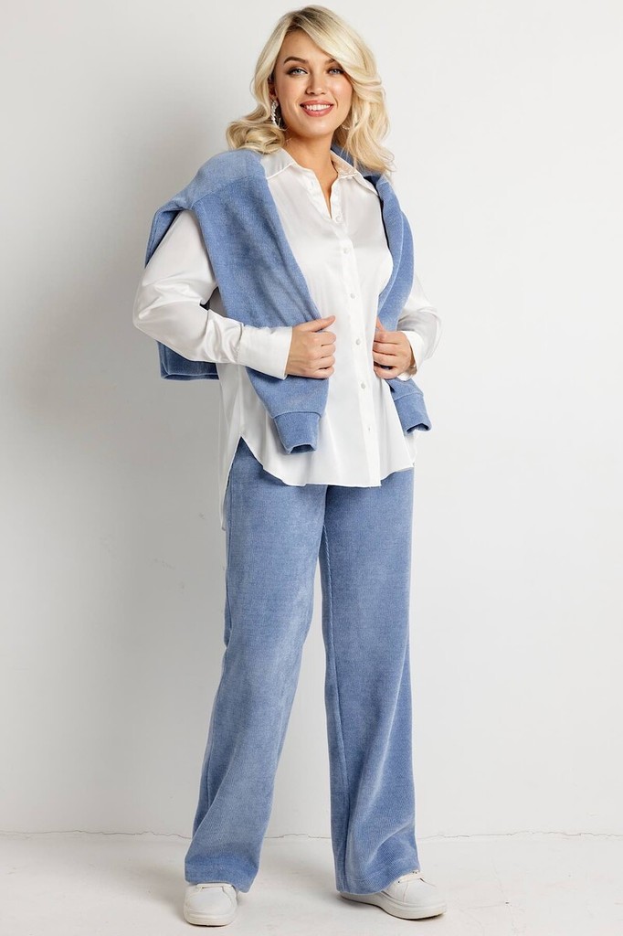 Состав : 65% полиэстер, 30% вискоза, 5% эластан Материал : вельвет Цвет : синий Принт : отсутствует Карманы : есть Резинка в поясе : да Вид застежки : без застежки Тип посадки брюк : высокая Пояс брюк... Показать описание : втачной Крой брюк : прямой Фасон брюк : классические Декоративные элементы : отсутствуют Длина готового изделия по внутреннему шву : 44-78 см, 46-78 см, 48-78 см, 50-78 см, 52-78 см Длина готового изделия по боковому шву : 44-106 см, 46-106 см, 48-106 см, 50-106 см, 52-106 см Отснято с водолазкой Б14540-20М и с жакетом Б14325-39М Вельветовые брюки с классическим прямым кроем — это универсальный и стильный элемент гардероба, который идеально подходит для осени и межсезонья. Эти женские брюки прекрасно сочетаются с различными элементами гардероба, будь то элегантные блузки, уютные джемперы, деловые пиджаки или комфортные футболки. По талии резинка. Благодаря универсальному дизайну, они легко вписываются в любой образ, будь то офисный стиль, школьный лук или повседневный наряд для прогулок. Создавайте стильные и удобные образы каждый день с этими вельветовыми брюками! Внимание! Рекомендуем ориентироваться на размерную сетку и выбирать свой привычный размер, согласно размерной таблице. *Допуск отклонения длины при массовом производстве 1-3 см является нормой. Уход за изделием: Ручная стирка или стирка в машине при температуре до 30 °C, деликатный режим. Не использовать отбеливатели. Разрешена глажка при температуре до 110 °C. При глажке использовать специальную насадку на подошве утюга, гладить с паром. Не замачивать и не выжимать. Стирать изделие наизнанку, отдельно от других вещей.