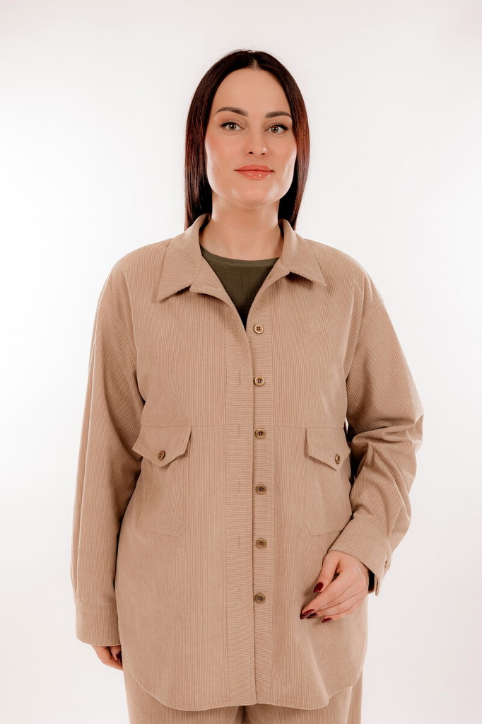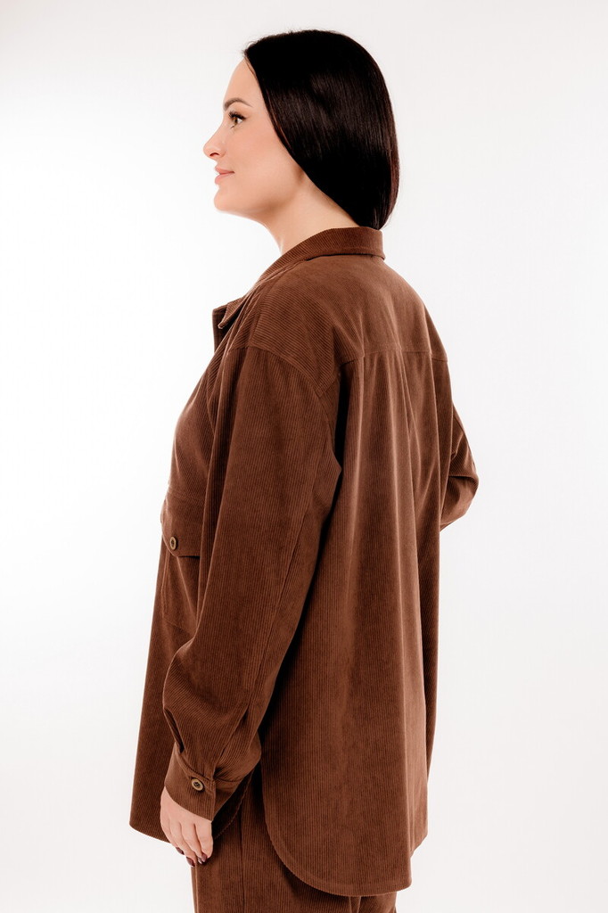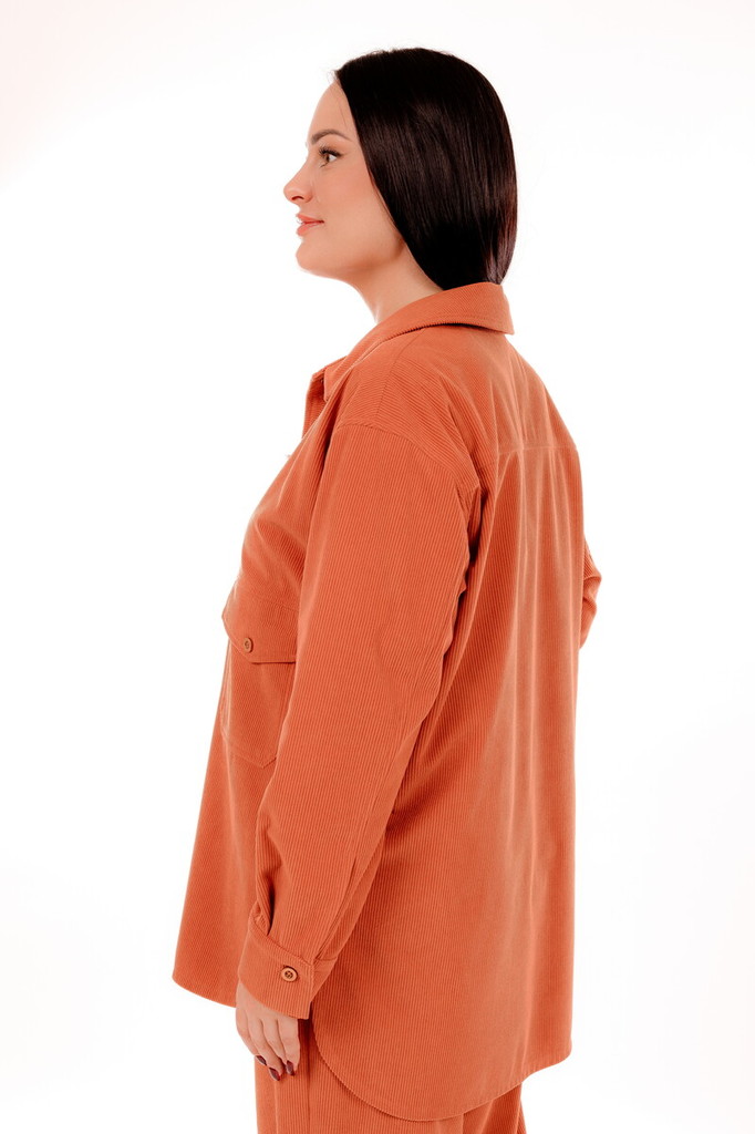 Повседневная блуза свободного силуэта, выполнена из вельветовой ткани . Блуза с отложным воротником, по переду с центральной застежкой на петли и пуговицы. . Спинка с отрезной кокеткой .Блуза с углубл... Показать описаниеенной проймой и удлиненной линией плеча. Рукав длинный заканчивается манжетом с застежкой на петлю и пуговицу. Блуза по переду с накладным карманом. Длина по спинке в 48 р-ре 72 см. Длина рукава от горловины 76 см
