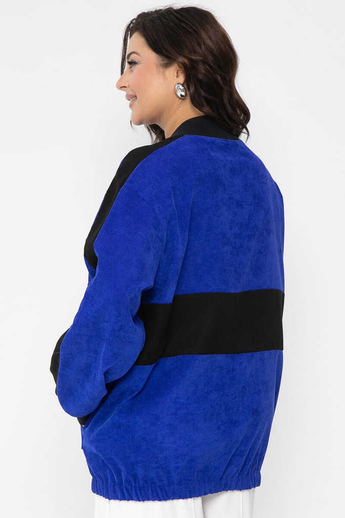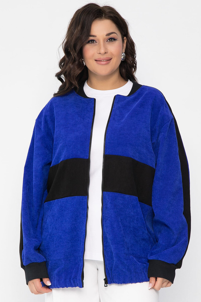 Состав: 97% полиэстер, 3% эластан. Материал: микровельвет. Цвет: электрик. Принт: отсутствует. Силуэт: свободный. Карманы: есть. Подкладка: отсутствует. Вид застежки: молния. Декоративные элементы: от... Показать описаниесутствуют. Длина: 44-46/ 74 см, 50-52/ 75 см. Отснято с брюками Б12685-13 Стильный бомбер прямого силуэта — идеальный выбор для создания модного образа! Этот бомбер среднего объема застегивается на молнию и оснащен трикотажным воротником-стойкой, что придает ему современный вид. Длинные втачные рукава со спущенным плечом и манжетами на трикотажной резинке обеспечивают удобство и свободу движений. На передней части расположены накладные карманы, а широкая горизонтальная вставка черного цвета добавляет оригинальности. Рукав — длинный, с центральной вертикальной вставкой черного цвета, начинающейся от горловины, на притачной манжете и на трикотажной резинке по низу. Бомбер изготовлен без подкладки. Уход за изделием: ручная стирка до 30 градусов; нельзя отбеливать; отжим запрещен; гладить при t не более 110 С; гладить с изнанки. Внимание! Рекомендуем ориентироваться на размерную сетку и выбирать свой привычный размер, согласно размерной таблице. *Допуск отклонения длины при массовом производстве 1-3 см является нормой.