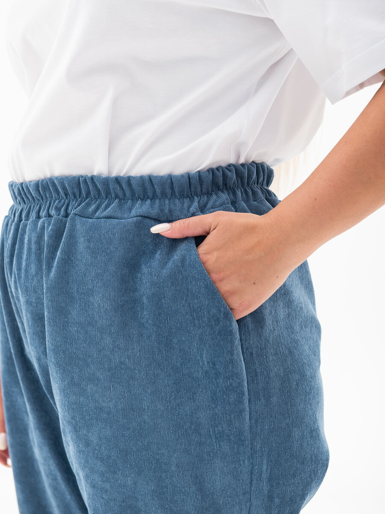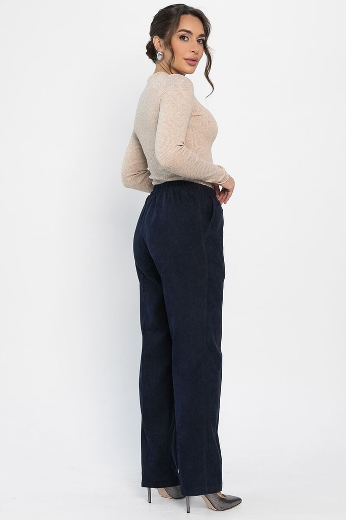 Артикул: Б8268. Ткань: вельвет. Состав: 60% п/э, 35% вискоза, 5% эластан. Цвет: синий. Вид застежки: отсутствует. Силуэт: прямой. Карманы: есть. Длина изделия по боковому шву: 46-48/ 95 см, 50-52/ 96 ... Показать описаниесм, 54-56/ 97 см. Рост модели: 168 см. Классические брюки из вельвета помогут Вам в создании изящных образов. По талии брюки на резинке, что позволяет добиться комфортной посадки по фигуре. В боковых швах есть карманы. Брюки подойдут для офисного и повседневного образа. Они не сковывают движений и выглядят стильно и лаконично, Вам останется только подобрать верх. Уход за изделием: ручная стирка до 30 градусов; нельзя отбеливать; деликатный отжим; гладить при t не более 110С; гладить с изнанки. *Допуск отклонения длины при массовом производстве 1-3 см является нормой.