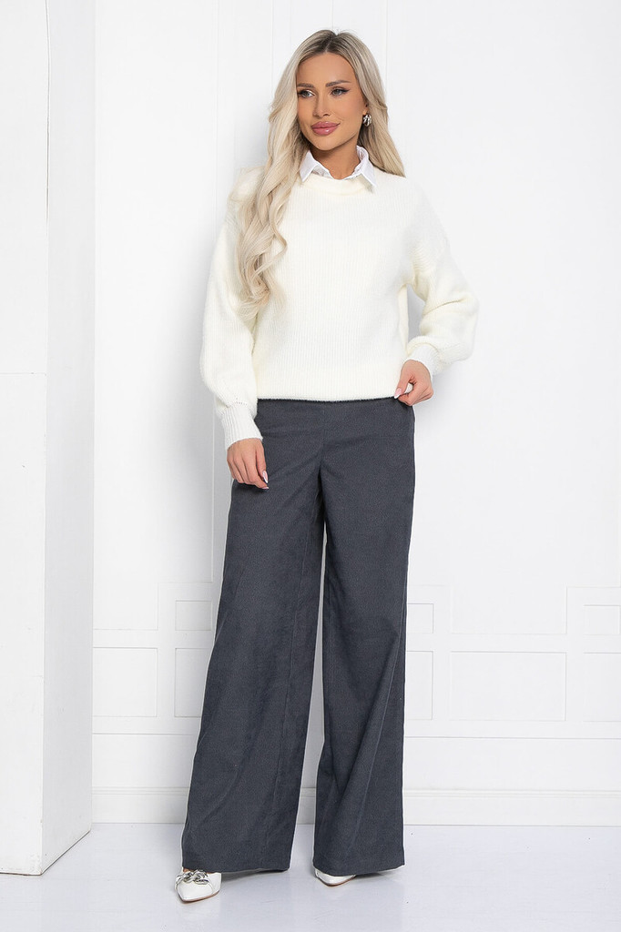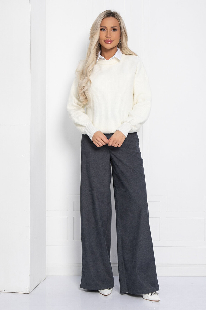 При создании образа использовался Джемпер "Барбара" (беж) Б8298 Артикул: Б8269. Ткань: вельвет. Состав: 60% п/э, 35% вискоза, 5% эластан. Цвет: молочный. Вид застежки: отсутствует. Силуэт: прямой. Кар... Показать описаниеманы: есть. Длина изделия по боковому шву: 46-48/ 95 см, 50-52/ 96 см, 54-56/ 97 см. Рост модели: 168 см. Классические брюки из вельвета помогут Вам в создании изящных образов. По талии брюки на резинке, что позволяет добиться комфортной посадки по фигуре. В боковых швах есть карманы. Брюки подойдут для офисного и повседневного образа. Они не сковывают движений и выглядят стильно и лаконично, Вам останется только подобрать верх. Уход за изделием: ручная стирка до 30 градусов; нельзя отбеливать; деликатный отжим; гладить при t не более 110С; гладить с изнанки. *Допуск отклонения длины при массовом производстве 1-3 см является нормой.
