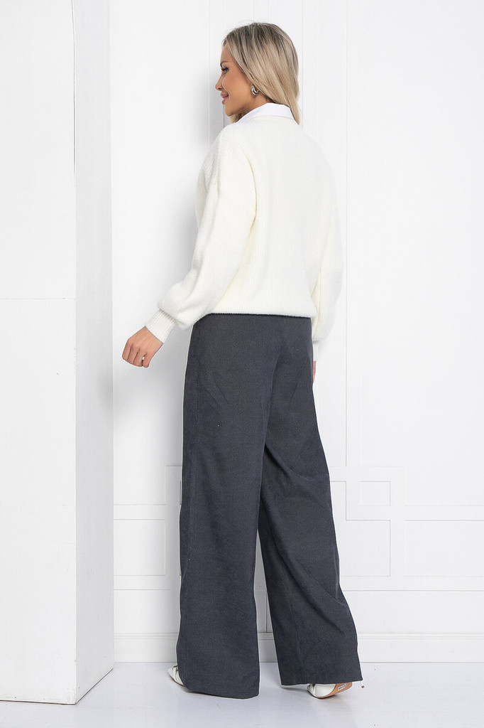 Артикул: Б12308-10. Тип ткани: синтетическая. Состав: 98% полиэстер, 2% эластан. Материал: микровельвет. Цвет: серый. Принт: отсутствует. Вид застежки: молния. Тип посадки: средняя. Фасон: классически... Показать описанией. Пояс: втачной. Крой: свободный. Резинка в поясе: отсутствует. Карманы: отсутствуют. Декоративные элементы: отсутствуют. Длина готового изделия по внутреннему шву: 44-54/ 79 см. Длина готового изделия по боковому шву: 44-54/ 112 см. Размер изделия на модели: 44 Рост модели: 168 м. Широкие брюки делают образ элегантным, визуально вытягивают силуэт. Оригинальная модель идеально сидит на фигуре любого типа благодаря завышенной линии талии, ростовка брюк рассчитана таким образом, чтобы брюки подходили как для высоких девушек, так и для невысоких. Приталенный силуэт (не оверсайз), красивая форма. Демисезонные стильные брюки сшиты из прочного материала без утеплителя. С такой моделью штанов можно легко составить множество повседневных образов: в школу, на работу и деловую встречу. А также нарядные образы: на день рождения, на прогулку по городу с друзьями. Брюки подойдут на осень, весну и как зимний и летний универсальный вариант. Уход за изделием: ручная стирка до 30 градусов; нельзя отбеливать; отжим запрещен; гладить при t не более 110 С; гладить с изнанки. Внимание! Рекомендуем ориентироваться на размерную сетку и выбирать свой привычный размер, согласно размерной таблице. *Допуск отклонения длины при массовом производстве 1-3 см является нормой.