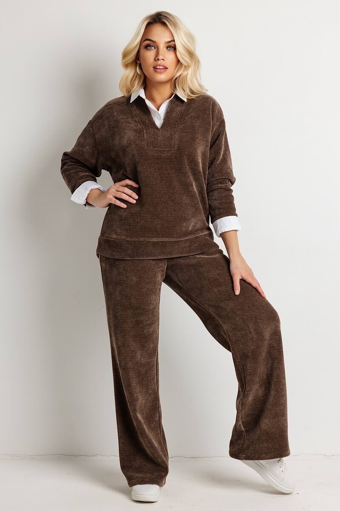 Артикул: Б12848-10М. Тип ткани: синтетический. Состав: 98% полиэстер, 2% эластан. Материал: вельвет. Цвет: шоколадный. Принт: отсутствует. Вид застежки: без застежки. Тип посадки: средний. Фасон: джог... Показать описаниегеры. Пояс: притачной. Крой: свободный. Резинка в поясе: есть. Карманы: есть. Декоративные элементы: отсутствуют. Длина готового изделия по внутреннему шву: 44/ 64 см, 46/ 65 см, 48/ 66 см, 50/ 67 см, 52/ 68 см, 54/ 69 см. Длина готового изделия по боковому шву: 44/ 88 см, 46/ 89 см, 48/ 90 см, 50/ 91 см, 52-54/ 92 см. Размер изделия на модели: 44 Рост модели: 168 см. Брюки отсняты с рубашкой арт. Б12863-10М Объемные брюки в стиле бохо — это свободный непринужденный стиль в современной моде. Шароварный силуэт создается за счет резинки по талии, свободной посадки в бедрах, бокового защипа по низу и оригинального высокого манжета в виде тюльпана. Свободные, прямые, просторные брюки бананы выгодно подчеркивают женские формы и скрывают недостатки. Комбинируйте их с различными видами топов, джемперов, блузок или футболок. Различные аутфиты сделают вас стильной, модной для любого выхода. Такие штаны универсальны и могут быть частью городского casual образа или классического делового, повседневного школьного и даже спортивного. Брюки бананы можно носить как домашнюю одежду, они незаменимы для поездок в путешествие или командировки. Уход за изделием: ручная стирка до 30 градусов; нельзя отбеливать; отжим запрещен; гладить при t не более 110 С; гладить с изнанки. Внимание! Рекомендуем ориентироваться на размерную сетку и выбирать свой привычный размер, согласно размерной таблице. *Допуск отклонения длины при массовом производстве 1-3 см является нормой.
