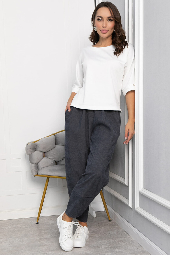 Артикул: Б12847-10М. Тип ткани: синтетический. Состав: 98% полиэстер, 2% эластан. Материал: вельвет Цвет: серый. Принт: отсутствует. Вид застежки: без застежки. Тип посадки: средний. Фасон: джоггеры. ... Показать описаниеПояс: притачной. Крой: свободный. Резинка в поясе: есть. Карманы: есть. Декоративные элементы: отсутствуют. Длина готового изделия по внутреннему шву: 44/ 64 см, 46/ 65 см, 48/ 66 см, 50/ 67 см, 52/ 68 см, 54/ 69 см. Длина готового изделия по боковому шву: 44/ 88 см, 46/ 89 см, 48/ 90 см, 50/ 91 см, 52-54/ 92 см. Размер изделия на модели: 44 Рост модели: 168 см. Брюки отсняты с рубашкой арт. Б12863-10М Объемные брюки в стиле бохо — это свободный непринужденный стиль в современной моде. Шароварный силуэт создается за счет резинки по талии, свободной посадки в бедрах, бокового защипа по низу и оригинального высокого манжета в виде тюльпана. Свободные, прямые, просторные брюки бананы выгодно подчеркивают женские формы и скрывают недостатки. Комбинируйте их с различными видами топов, джемперов, блузок или футболок. Различные аутфиты сделают вас стильной, модной для любого выхода. Такие штаны универсальны и могут быть частью городского casual образа или классического делового, повседневного школьного и даже спортивного. Брюки бананы можно носить как домашнюю одежду, они незаменимы для поездок в путешествие или командировки. Уход за изделием: ручная стирка до 30 градусов; нельзя отбеливать; отжим запрещен; гладить при t не более 110 С; гладить с изнанки. Внимание! Рекомендуем ориентироваться на размерную сетку и выбирать свой привычный размер, согласно размерной таблице. *Допуск отклонения длины при массовом производстве 1-3 см является нормой.