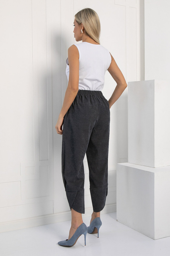 Артикул: Б8857. Ткань: вельвет. Состав: 100% п/э. Цвет: темно-серый. Вид застежки: молния, кнопка. Карманы: есть. Длина брюк по боковому шву: 44-54/ 107 см. Рост модели: 168 см. Практичные и комфортны... Показать описаниее брюки из вельвета. Модель выполнена в классическом варианте - прямой крой, к низу немного расклешенный. Есть карманы. Такой вариант брюк прекрасно подойдет для работы в офисе или просто на каждый день. Брюки на притачном поясе, по спинке на резинке. Уход за изделием: ручная стирка до 30 градусов; нельзя отбеливать; деликатный отжим; гладить при t не более 110 С; гладить с изнанки. *Допуск отклонения длины при массовом производстве 1-3 см является нормой.