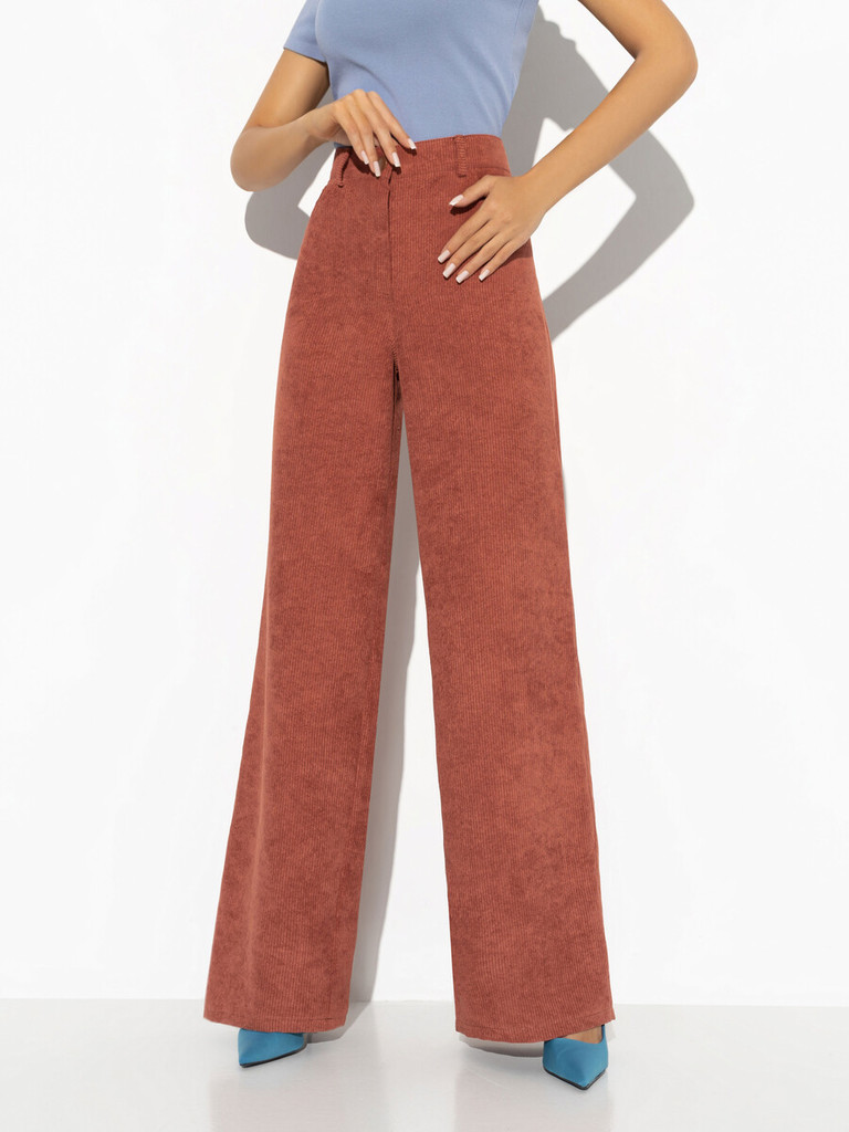 Артикул: Б11424. Тип ткани: синтетическая. Состав: 98% полиэстер, 2% эластан. Материал: микровельвет. Цвет: коричневый. Принт: отсутствует. Вид застежки: молния. Тип посадки: высокий. Фасон: классичес... Показать описаниекий. Пояс: притачной. Крой: свободный. Резинка в поясе: отсутствует. Карманы: отсутствуют. Декоративные элементы: отсутствуют. Длина готового изделия по внутреннему шву: 44-54/ 79 см. Длина готового изделия по боковому шву: 44-54/ 112 см. Размер изделия на модели: 44. Рост модели: 168 см. Широкие брюки делают образ элегантным, визуально вытягивают силуэт. Оригинальная модель идеально сидит на фигуре любого типа благодаря завышенной линии талии, ростовка брюк рассчитана таким образом, чтобы брюки подходили как для высоких девушек, так и для невысоких. Приталенный силуэт (не оверсайз), красивая форма. Демисезонные стильные брюки сшиты из прочного материала без утеплителя. С такой моделью штанов можно легко составить множество повседневных образов: в школу, на работу и деловую встречу. А также нарядные образы: на день рождения, на прогулку по городу с друзьями. Брюки подойдут на осень, весну и как зимний и летний универсальный вариант. Уход за изделием: ручная стирка до 30 градусов; нельзя отбеливать; отжим запрещен; гладить при t не более 110 С; гладить с изнанки. Внимание! Рекомендуем ориентироваться на размерную сетку и выбирать свой привычный размер, согласно размерной таблице. *Допуск отклонения длины при массовом производстве 1-3 см является нормой.