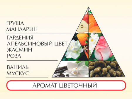 Палитра любви в звучании аромата! В звучании аромата можно услышать сладко-фруктовые аккорды, прозрачную вуаль розовой дымки, почувствовать ванильную прохладу и мягкие пряные нюансы. Звуки любви выраж... Показать описаниеаются в цветовой гамме. Рубиновый цвет олицетворяет физическую страсть, изумрудный - сердечную привязанность. А в сочетании они рождают аметистовый - ноту, определяющую звучание аромата "Любви в цветах". Сладкие ноты розового перца и и груши, терпкость черной смородины и грейпфрута в начале композиции рождают силу притяжения. Многогранное звучание розы и жасмина в цветочно-фруктовых оттенках гелиотропа и ананаса придают цветочным нотам душевность и мягкую скромность. В шлейфе аромата играют благородные мотивы. Древесные звуки белого кедра, древесного янтаря и пачули наполнены теплой энергией земли. В этом и состоит гармония великого чувства, выраженного в аромате.