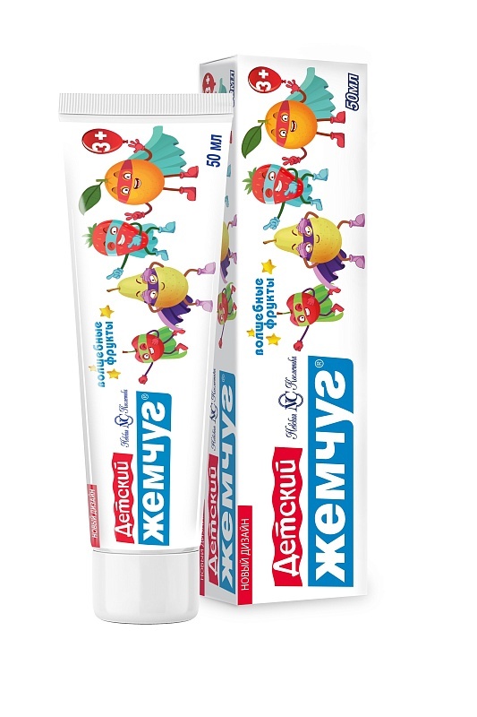 НОВЫЙ ЖЕМЧУГ 50мл Зубная паста Волшебные фрукты комплекс для детей