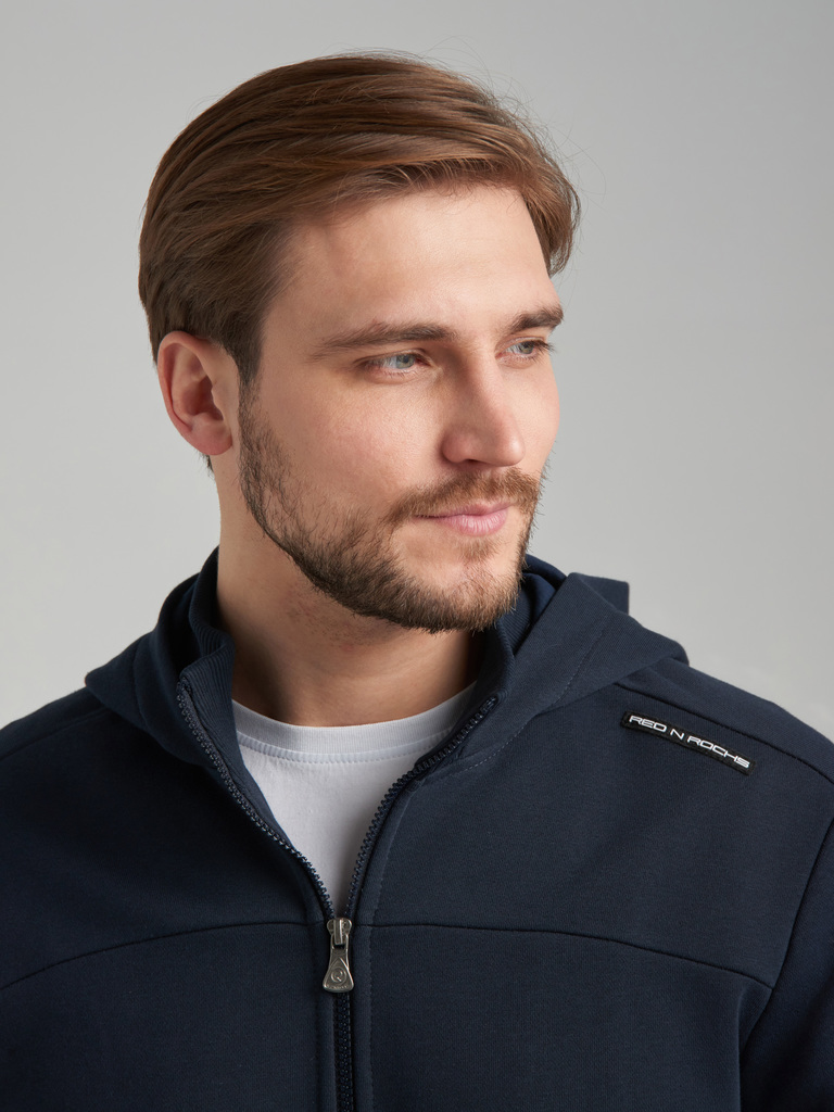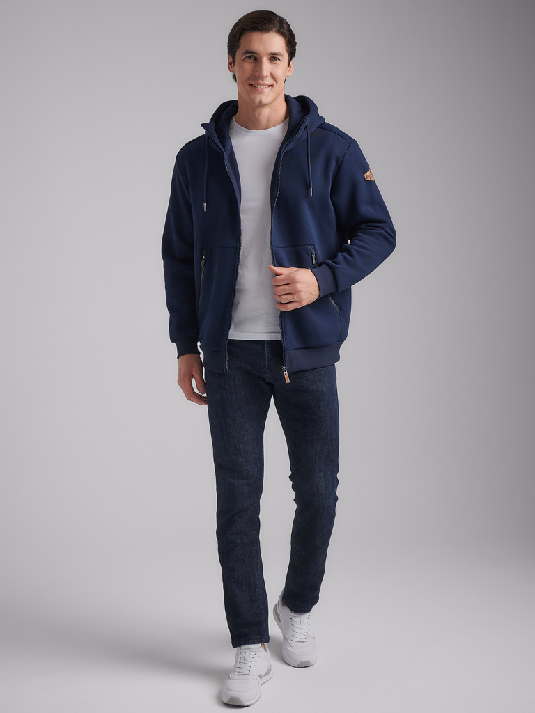 Толстовка изготовлена из плотного хлопкового трикотажного полотна с изнаночным начесом. Изделие на поясе, с капюшоном, застегивается на молнию. Удобные карманы «Кенгуру», застегиваются на молнии. Чита... Показать описаниеть далее Рукава втачные. Капюшон со стойкой, по лицевой части регулируется шнуром. Пояс и манжеты куртки изготовлены из плотной эластичной трикотажной резинки. На левом рукаве настрочен шеврон с фирменным логотипом.