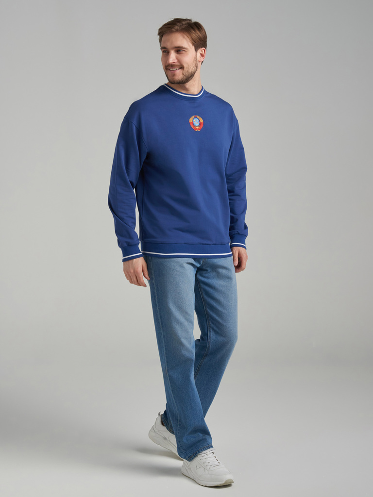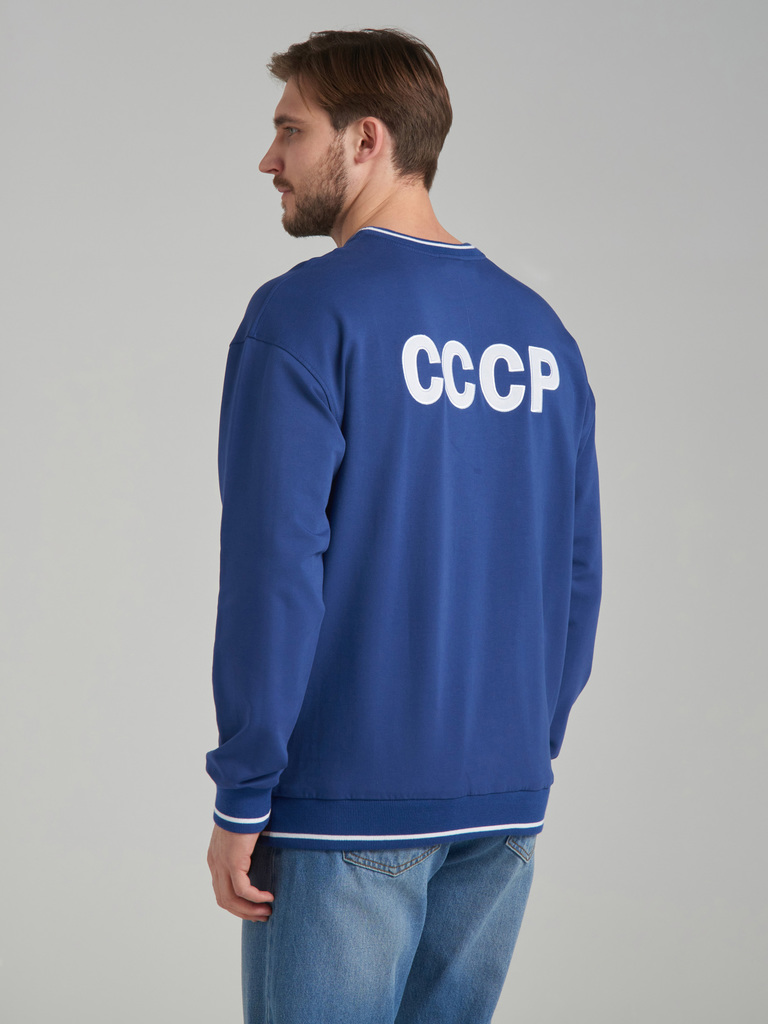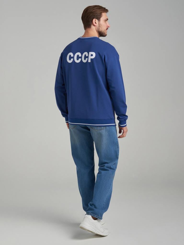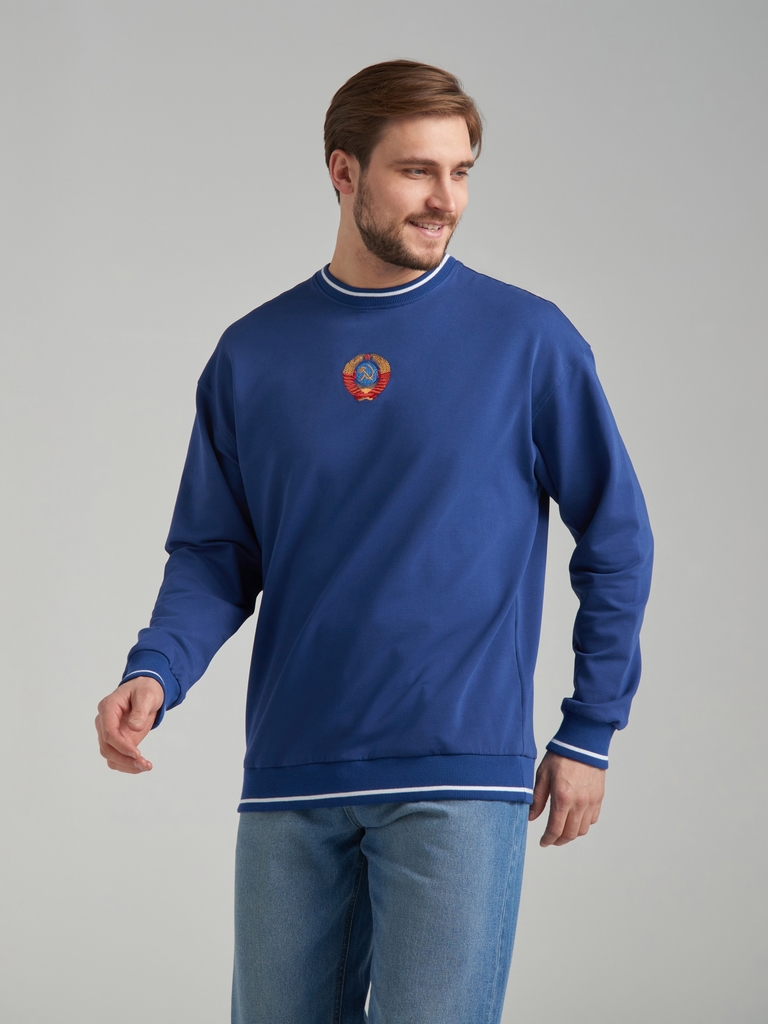 Свитшот мужской в стиле СССР, выполнен из качественного хлопкового полотна премиального качества. Это оригинальная реплика первой спортивной формы олимпийской сборной СССР, в которой наша легендарная ... Показать описаниекоманда впервые приняла участие в олимпийских играх 1952 года в Хельсинки. Оригинальный синий цвет спортивных костюмов, свойственный той эпохе сегодня идеально впишется в любой гардероб благодаря отличному сочетанию с джинсами. Читать далее Объемная вышивка герба СССР по центру груди тонко передает актуальный ретро стиль, особенно в сочетании с бомберами, кожаными куртками, пиджаками и пальто, что делает этот свитшот актуальным, не только летом, но и в течении всего года. Крупная вышивка СССР на спине придает толстовке яркий, узнаваемый имидж легендарной спортивной формы, что делает свитшот потрясающим подарком для родных и близких людей, связанных с вами одной судьбой, историей и традициями. Такой подарок сразу займёт особое в сердце и гардеробе близкого человека! Благодаря высокому качеству полотна и пошива, при правильном