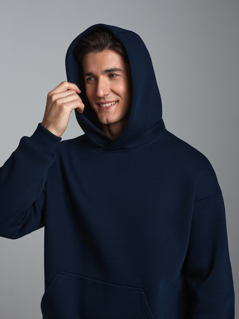 Толстовка-худи мужская с капюшоном из плотного и мягкого хлопкового трикотажного полотна с изнаночным начесом. Рукава втачные рубашечного покроя со спущенной линией плеча. Карман "кунгуру". Читать дал... Показать описаниеее Манжеты и пояс толстовки из трикотажной резинки.